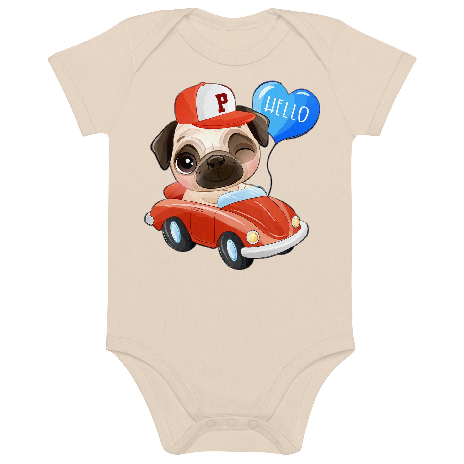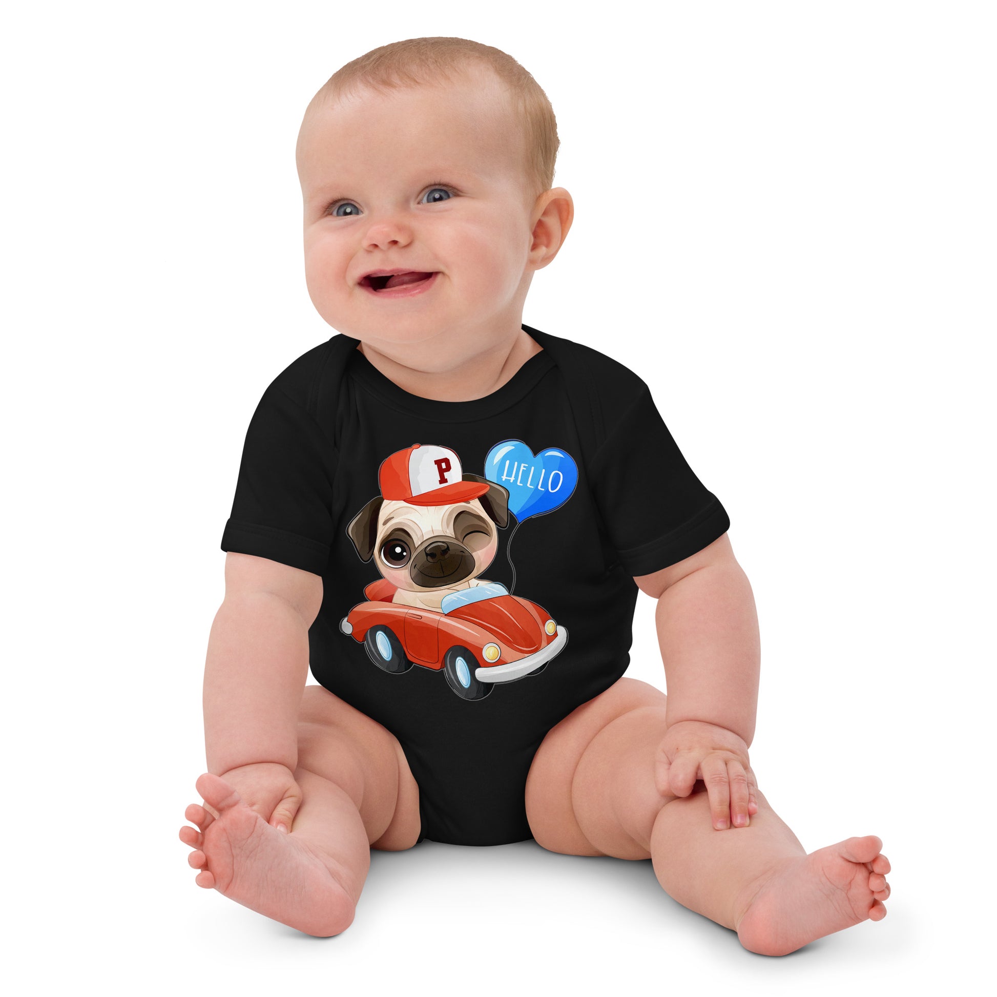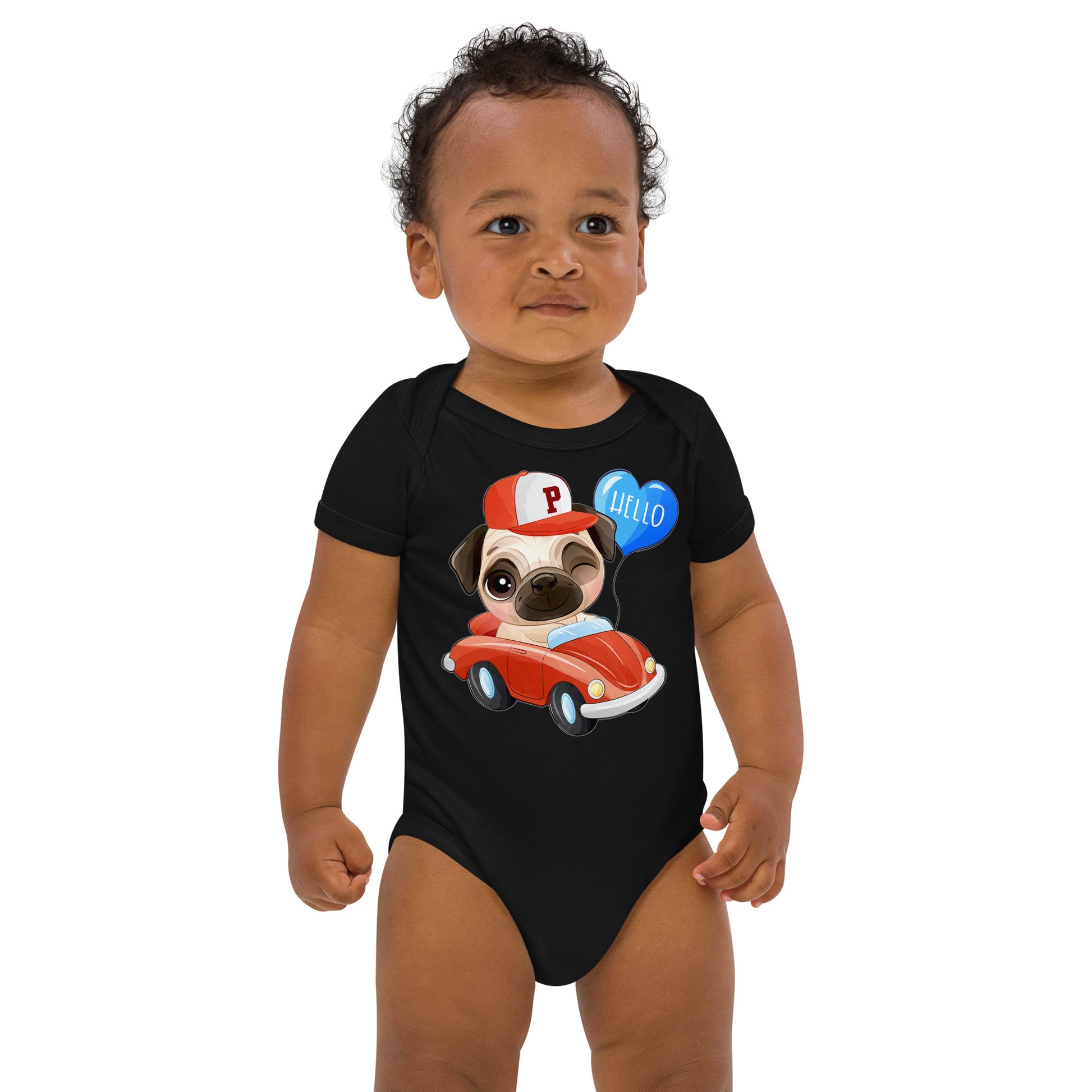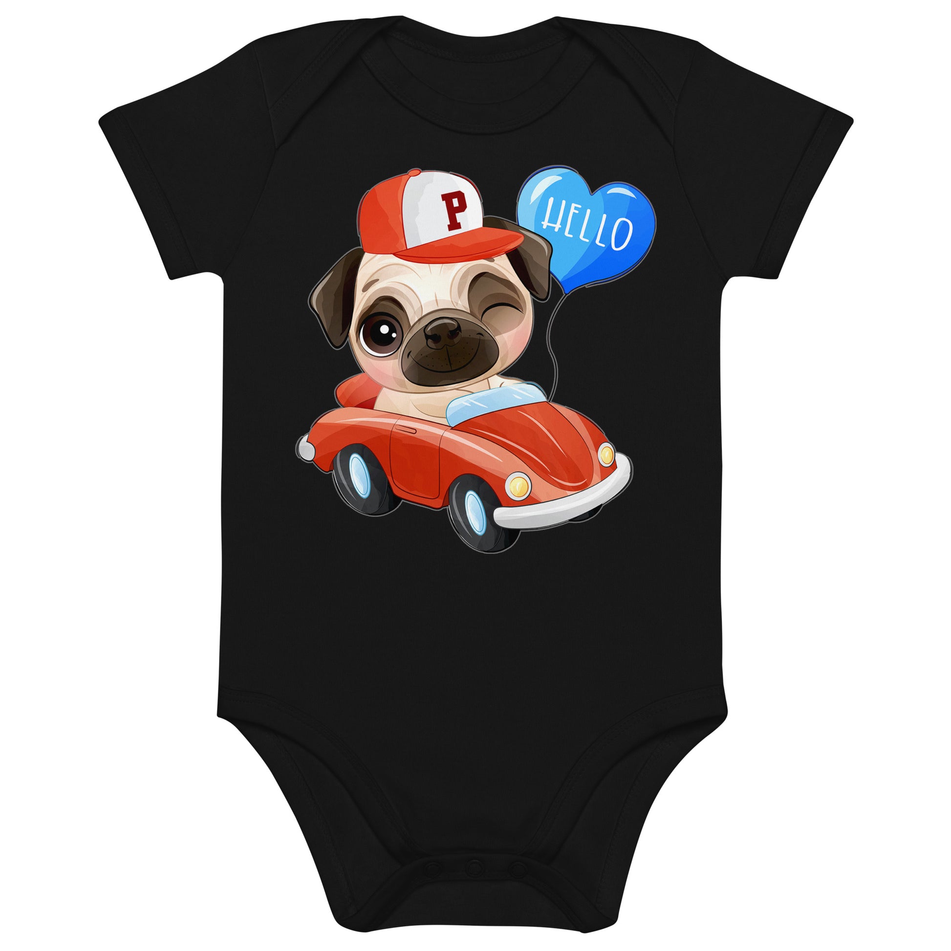 Cute Puppy Dog Pug Driving Car Bodysuit, No. 0224