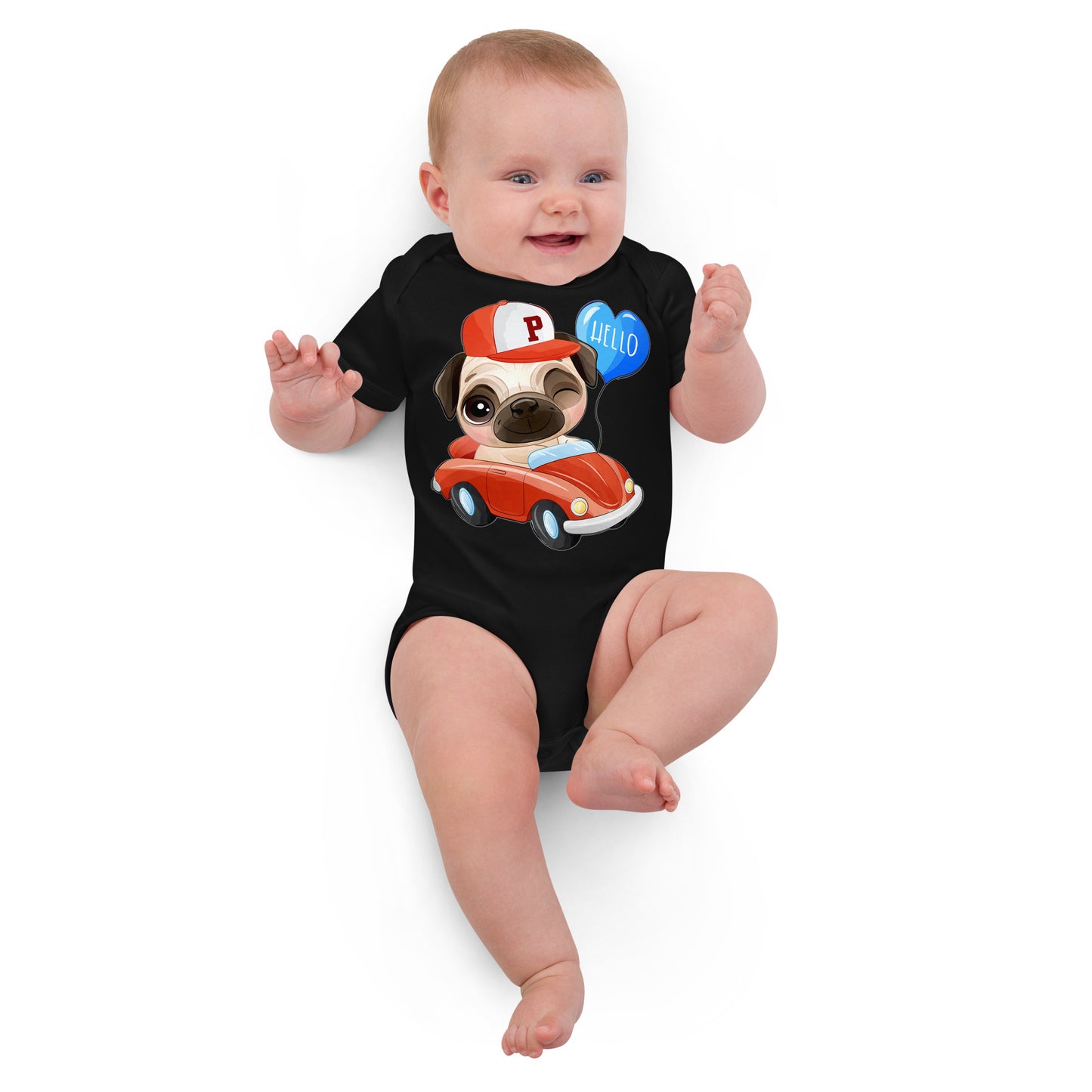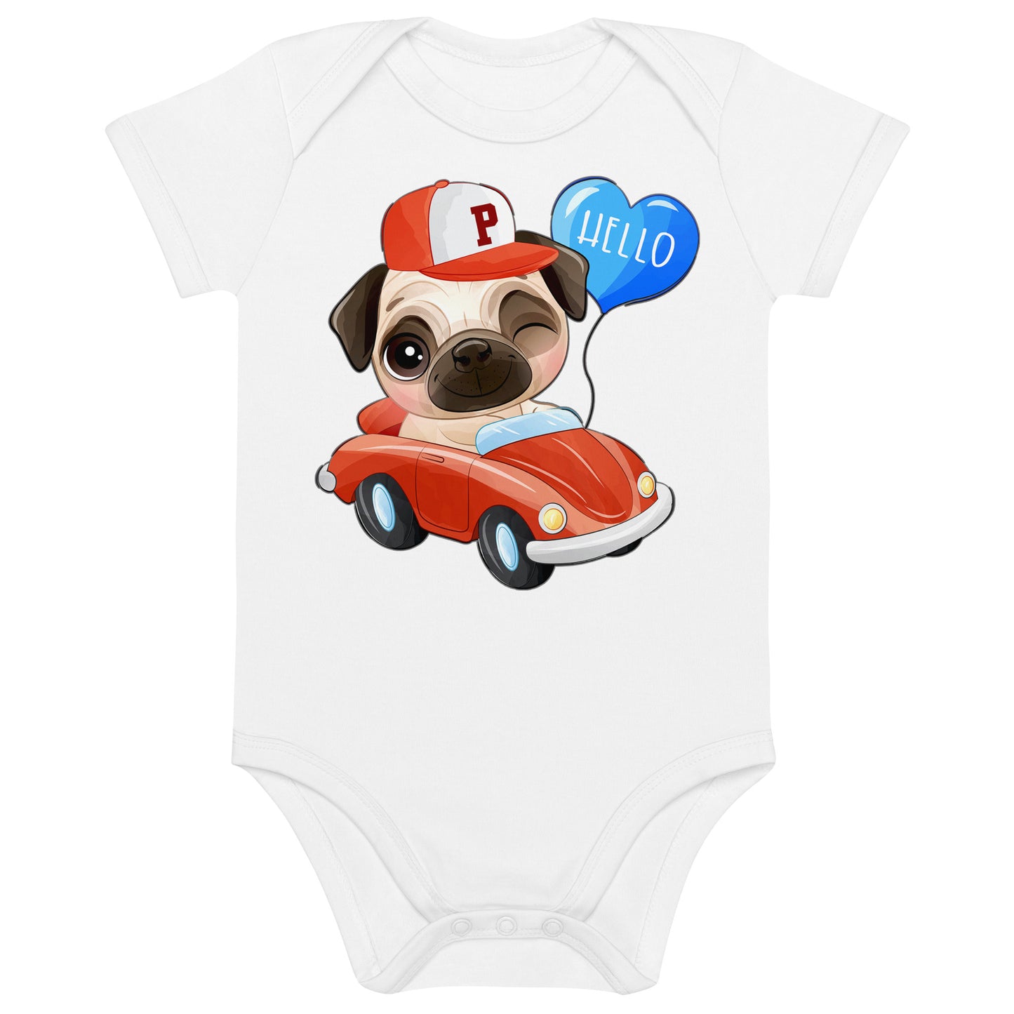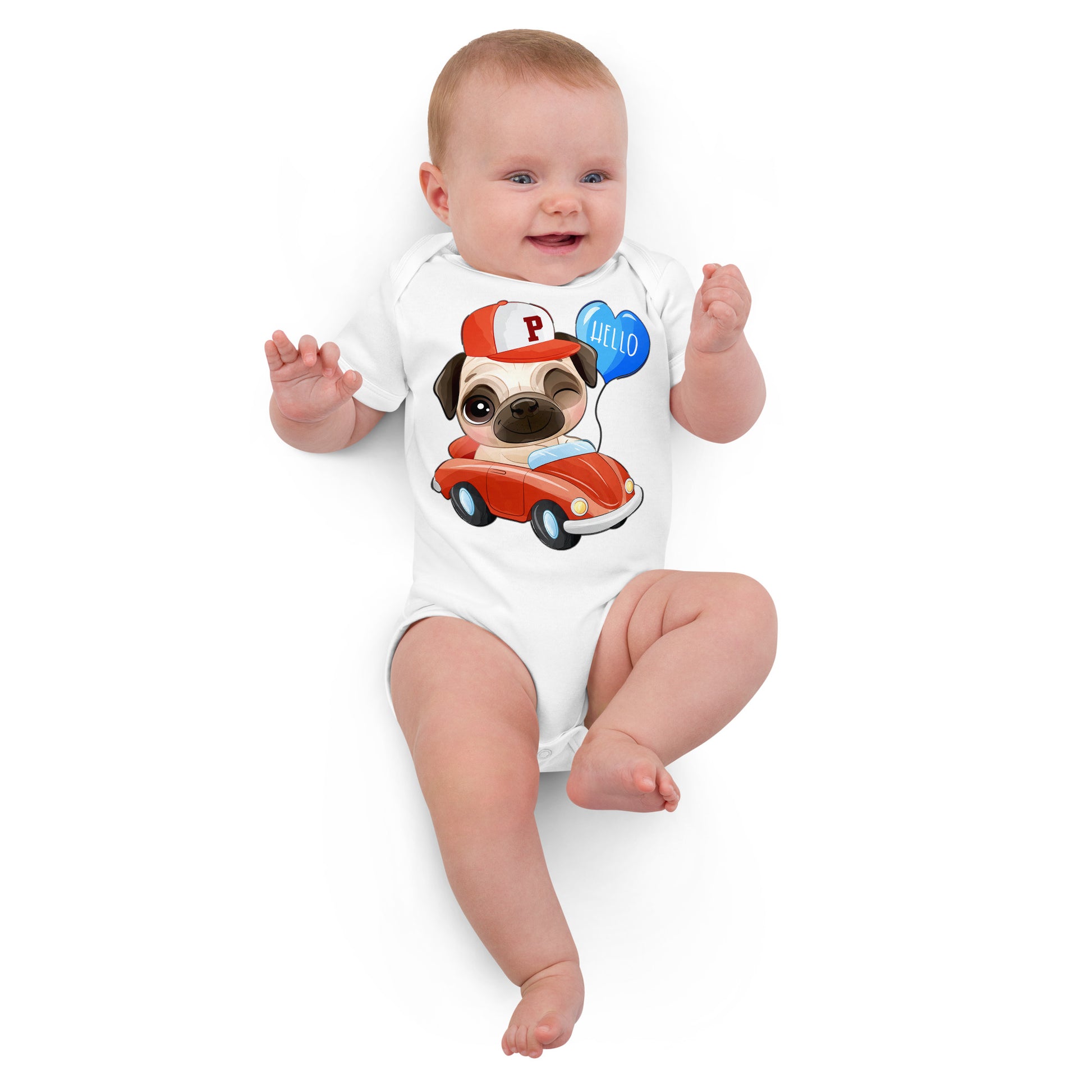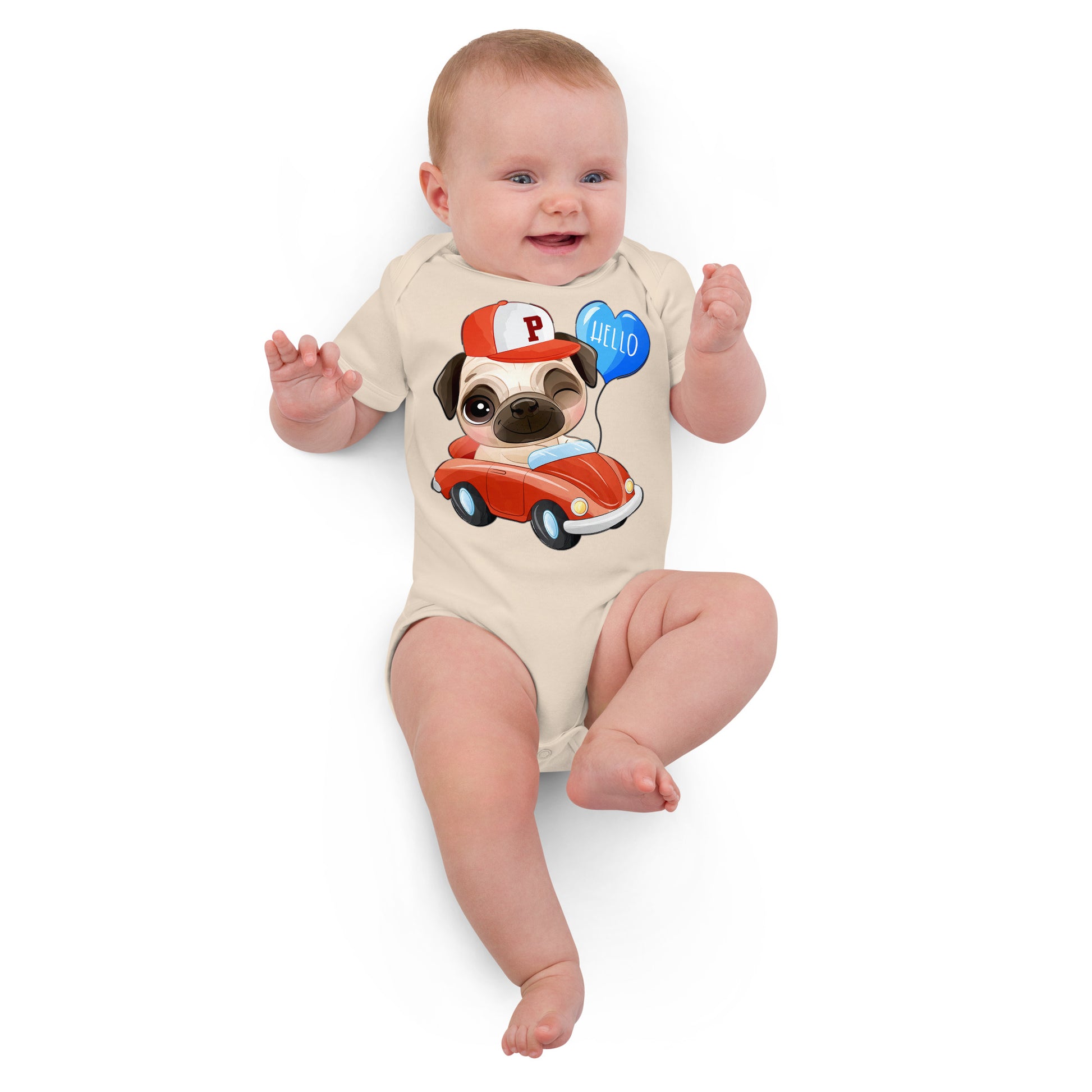 Cute Puppy Dog Pug Driving Car Bodysuit, No. 0224