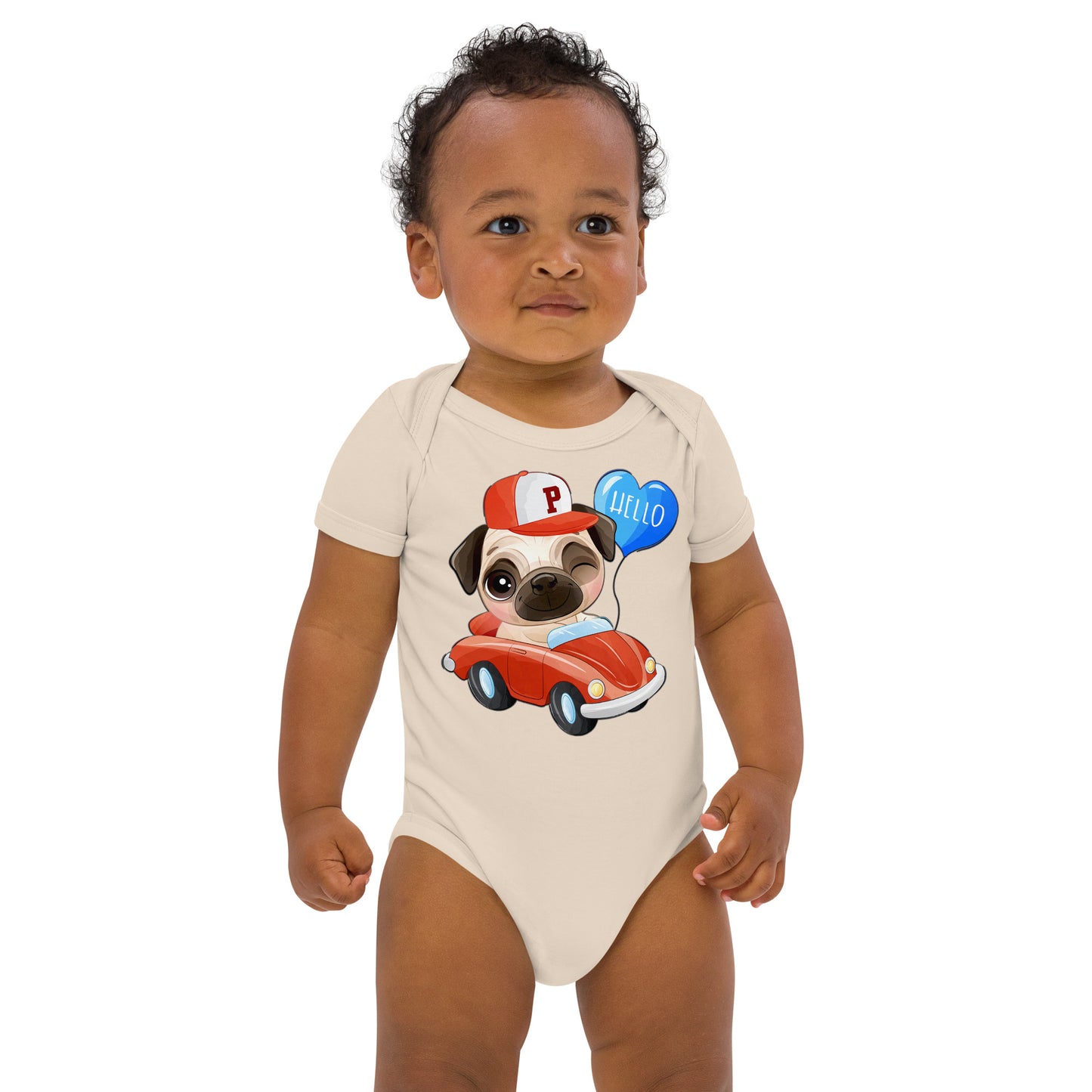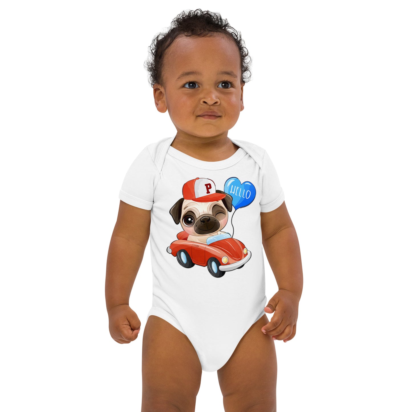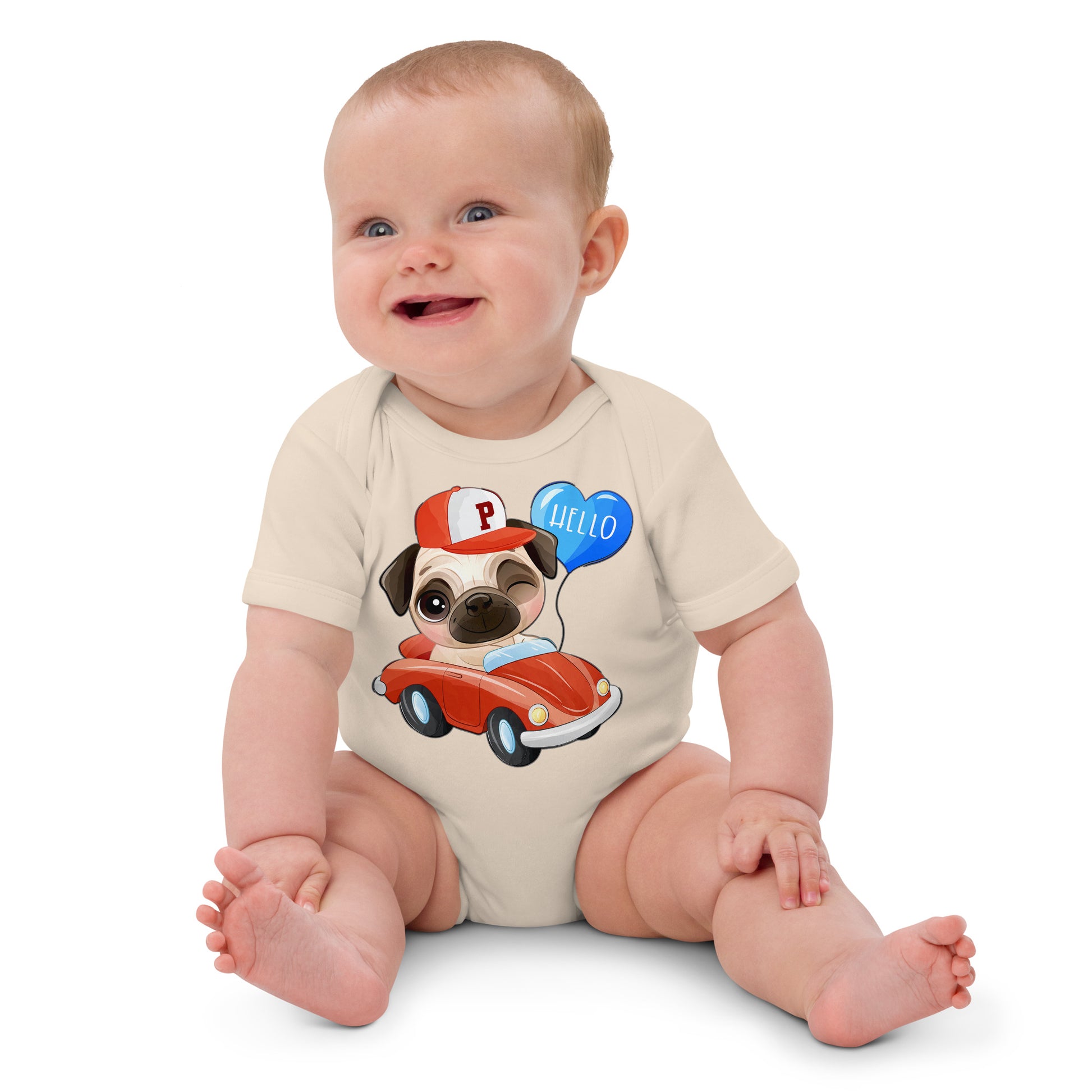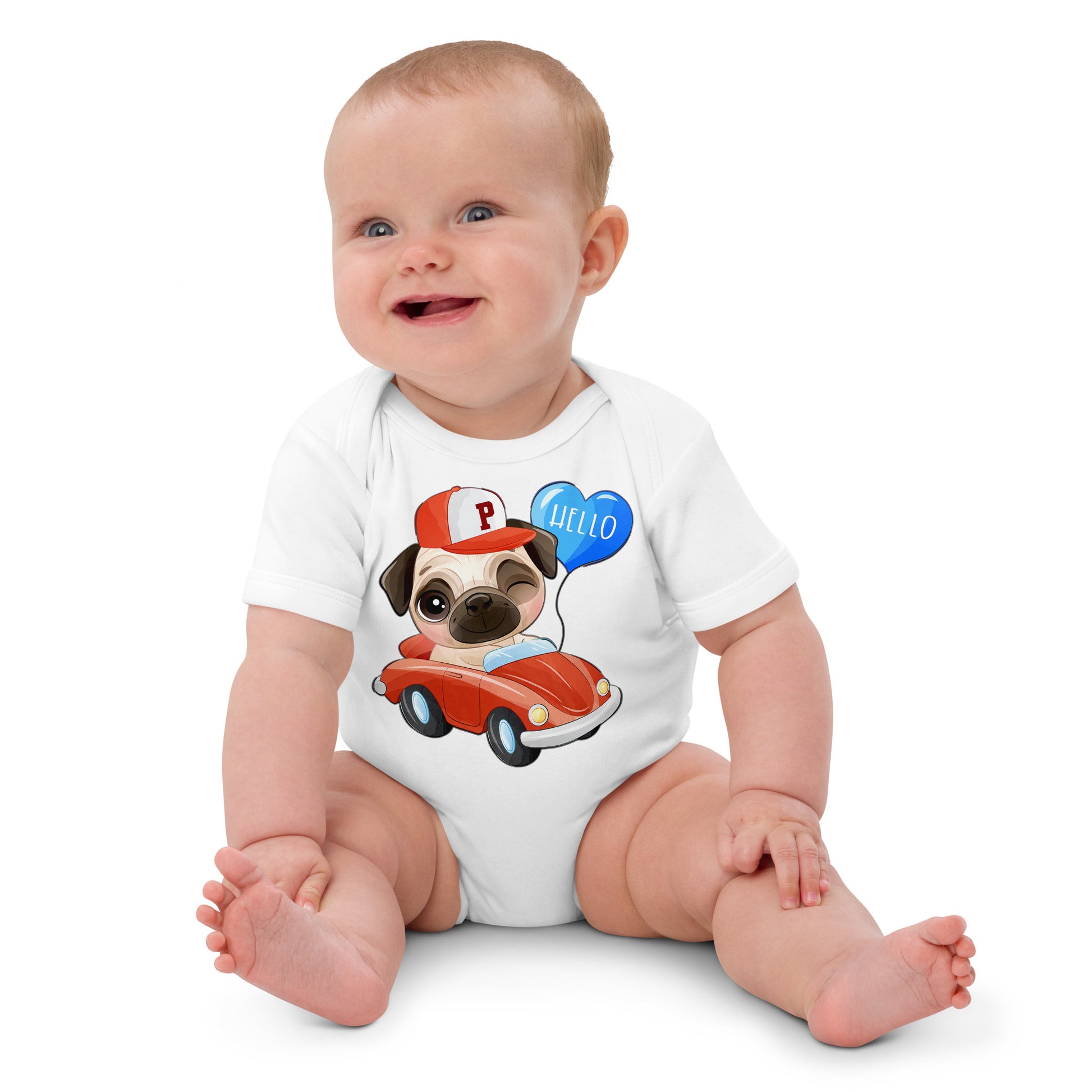 Cute Puppy Dog Pug Driving Car Bodysuit, No. 0224