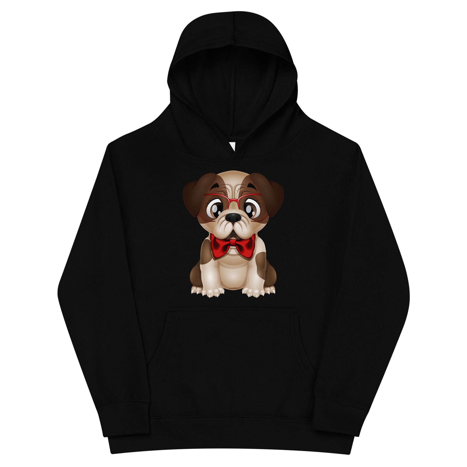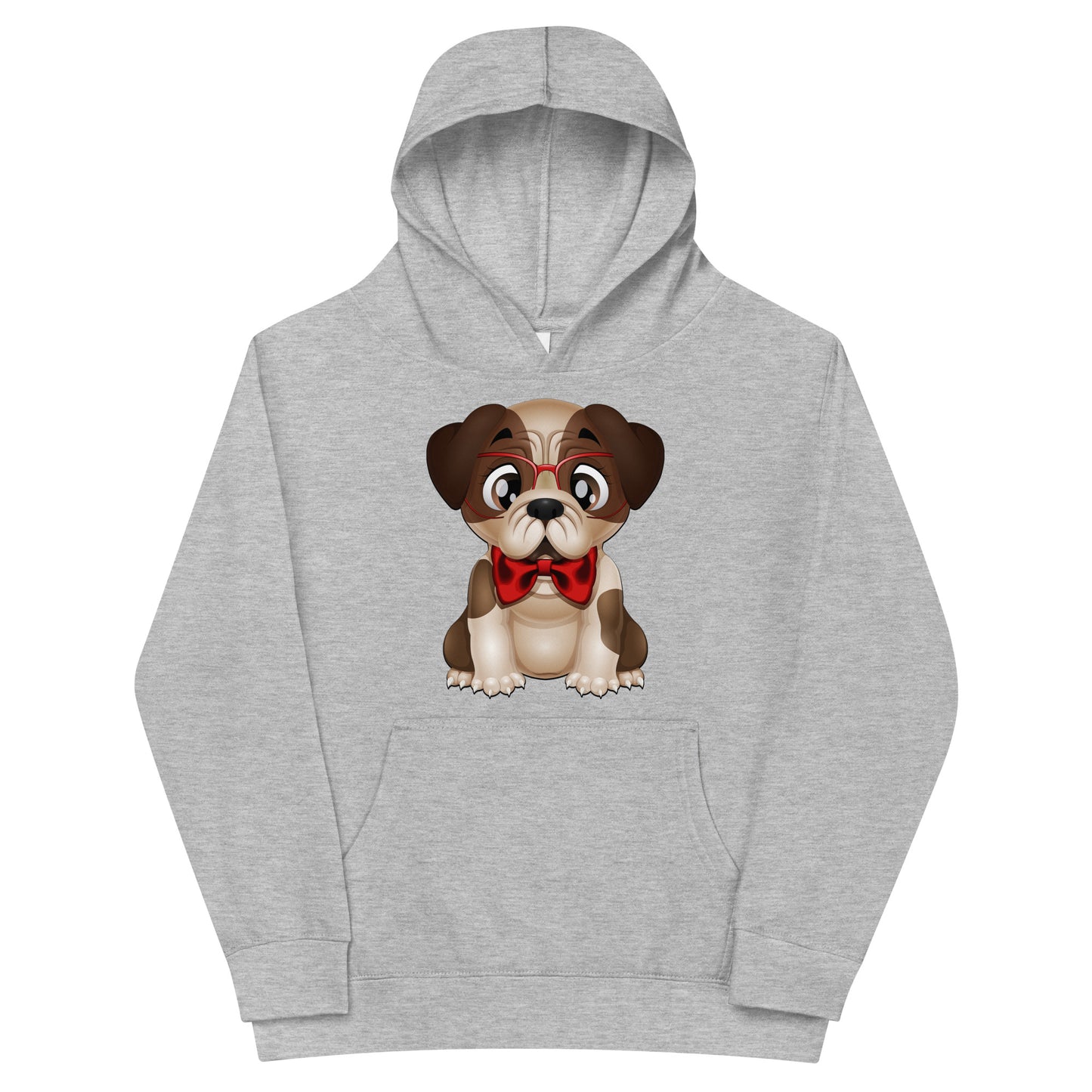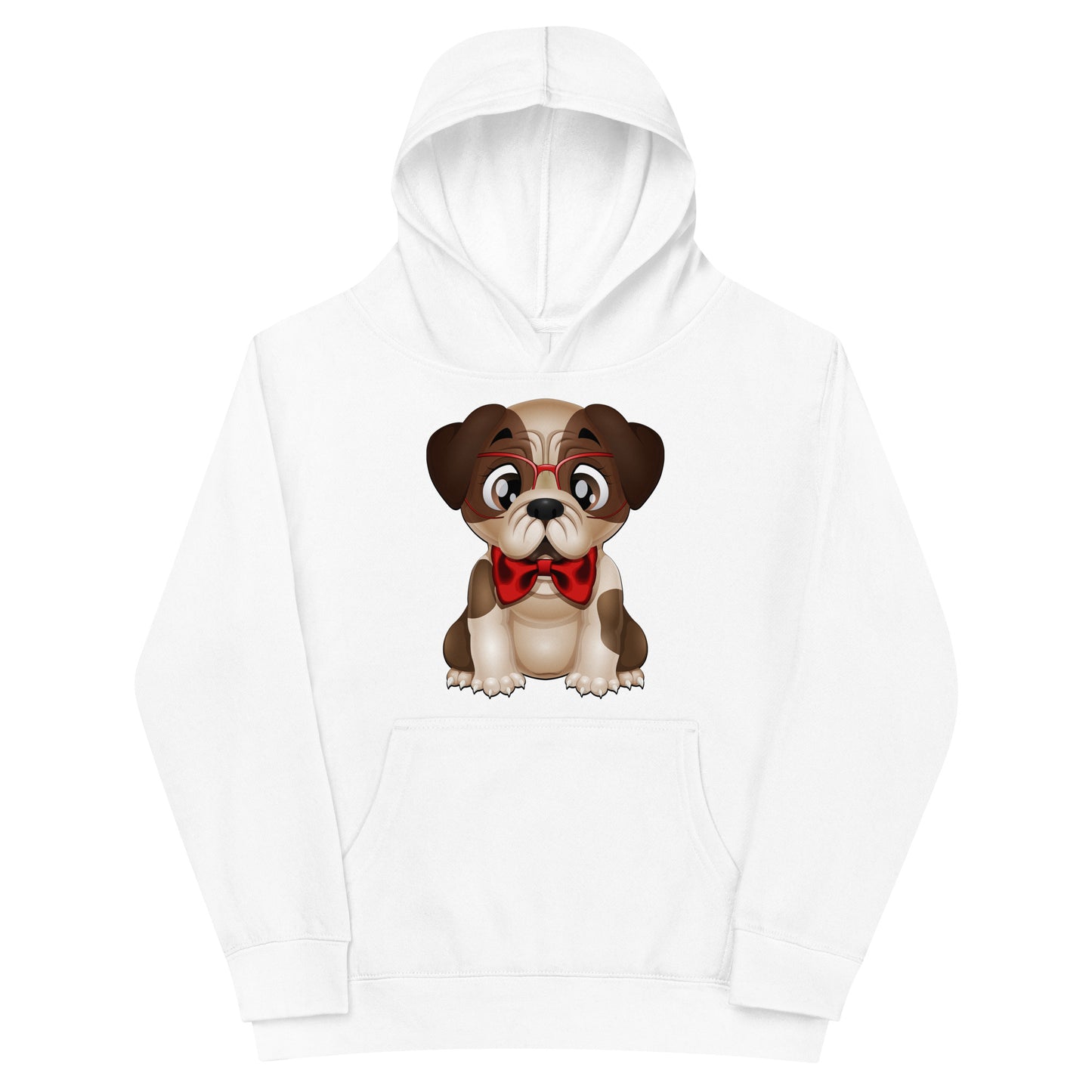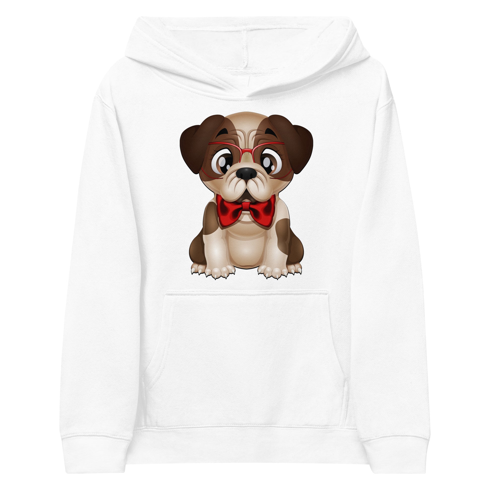 Cute Puppy Dog Pug Wearing Red Bow Hoodie, No. 0225