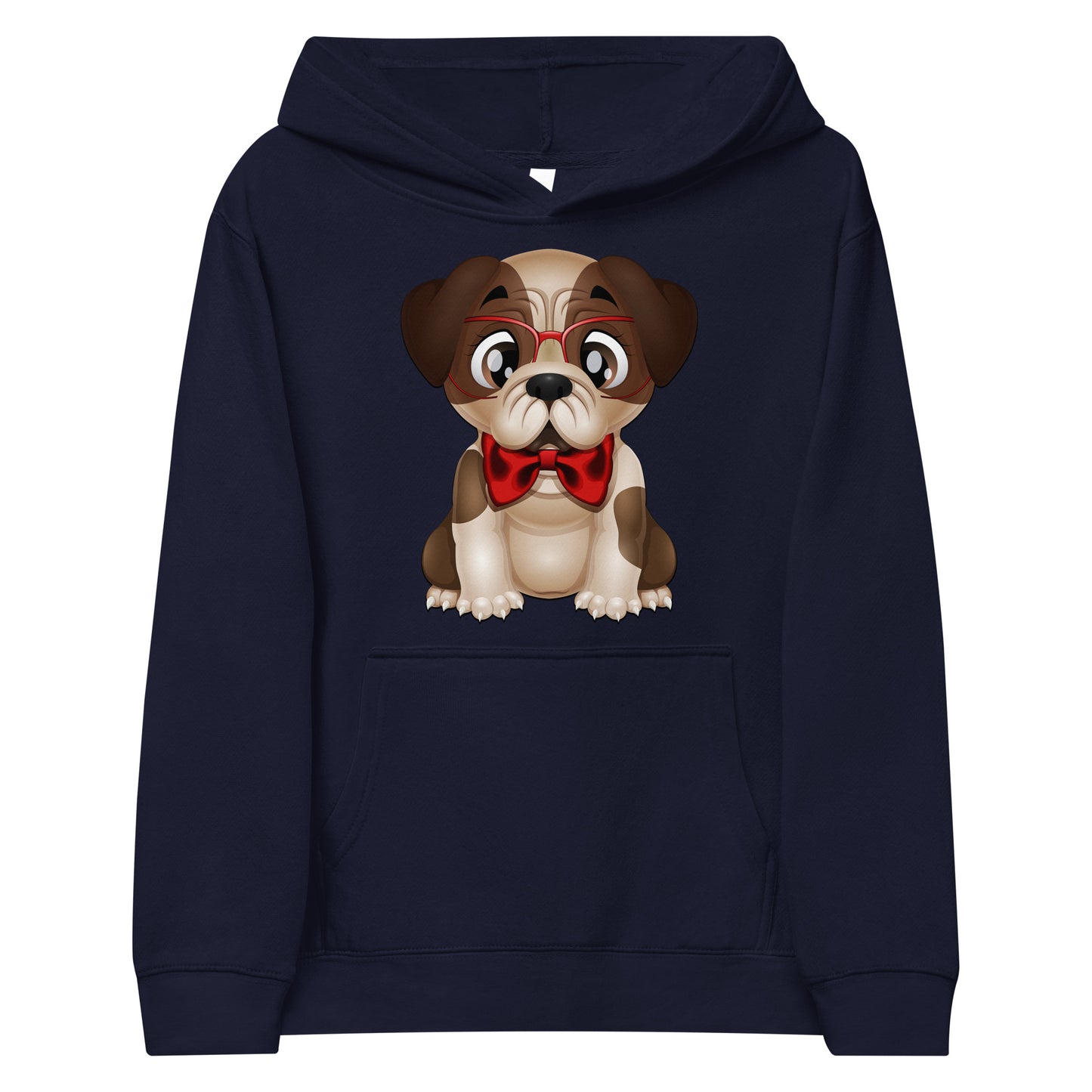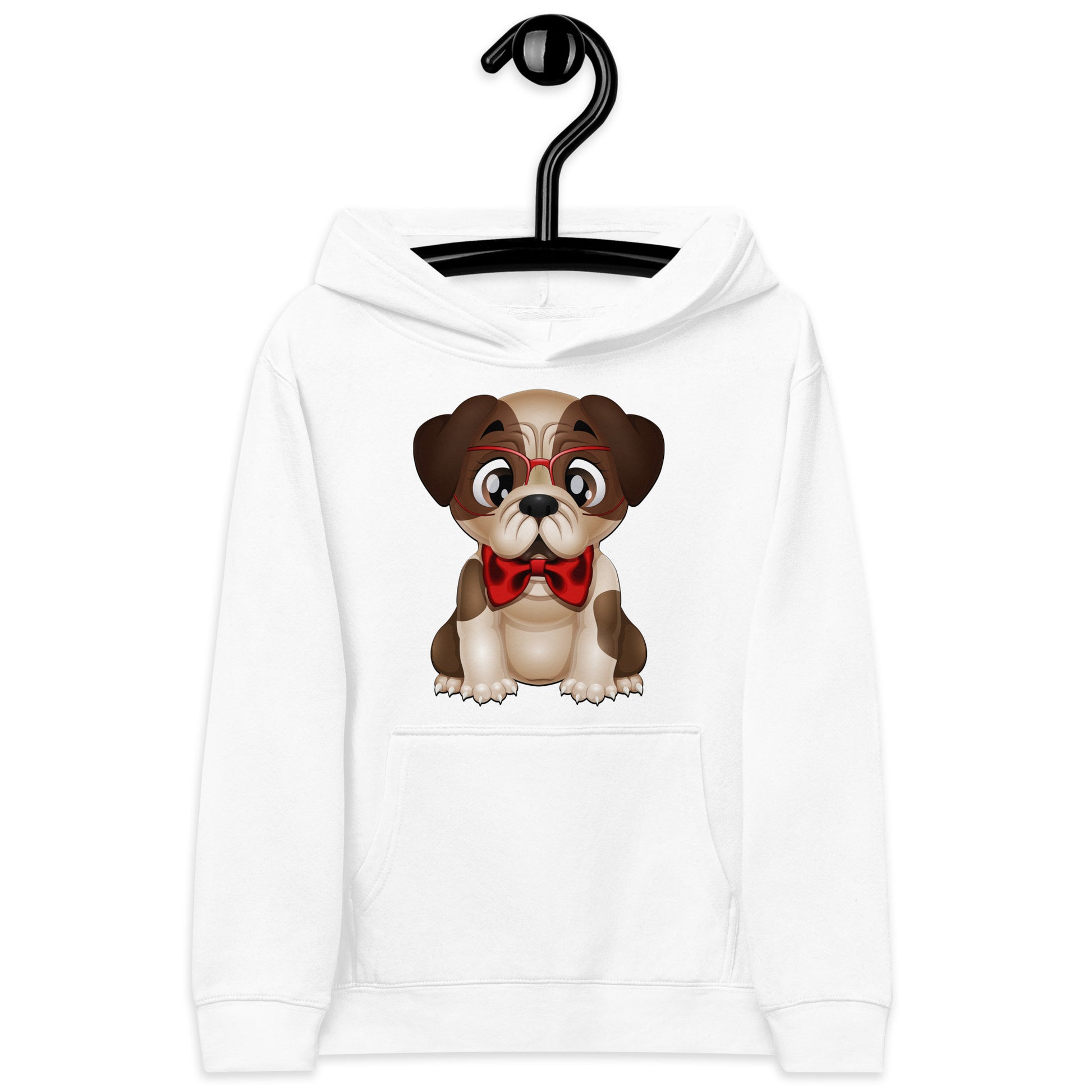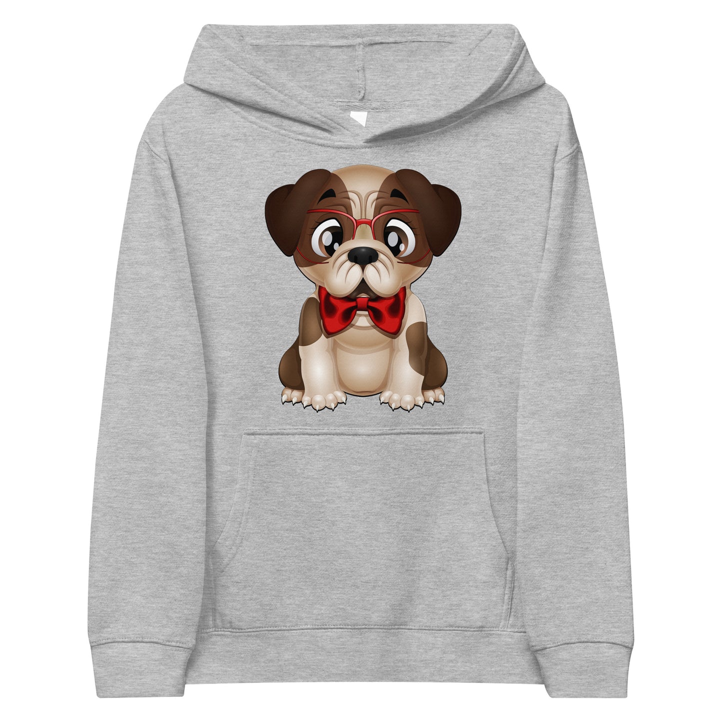 Cute Puppy Dog Pug Wearing Red Bow Hoodie, No. 0225