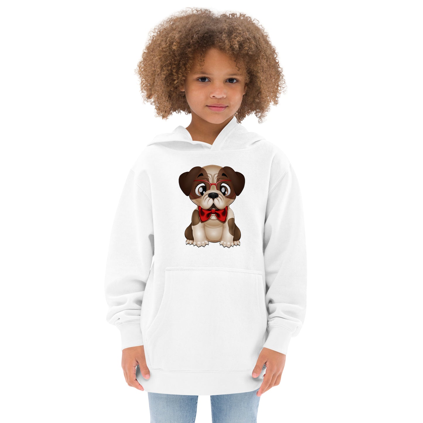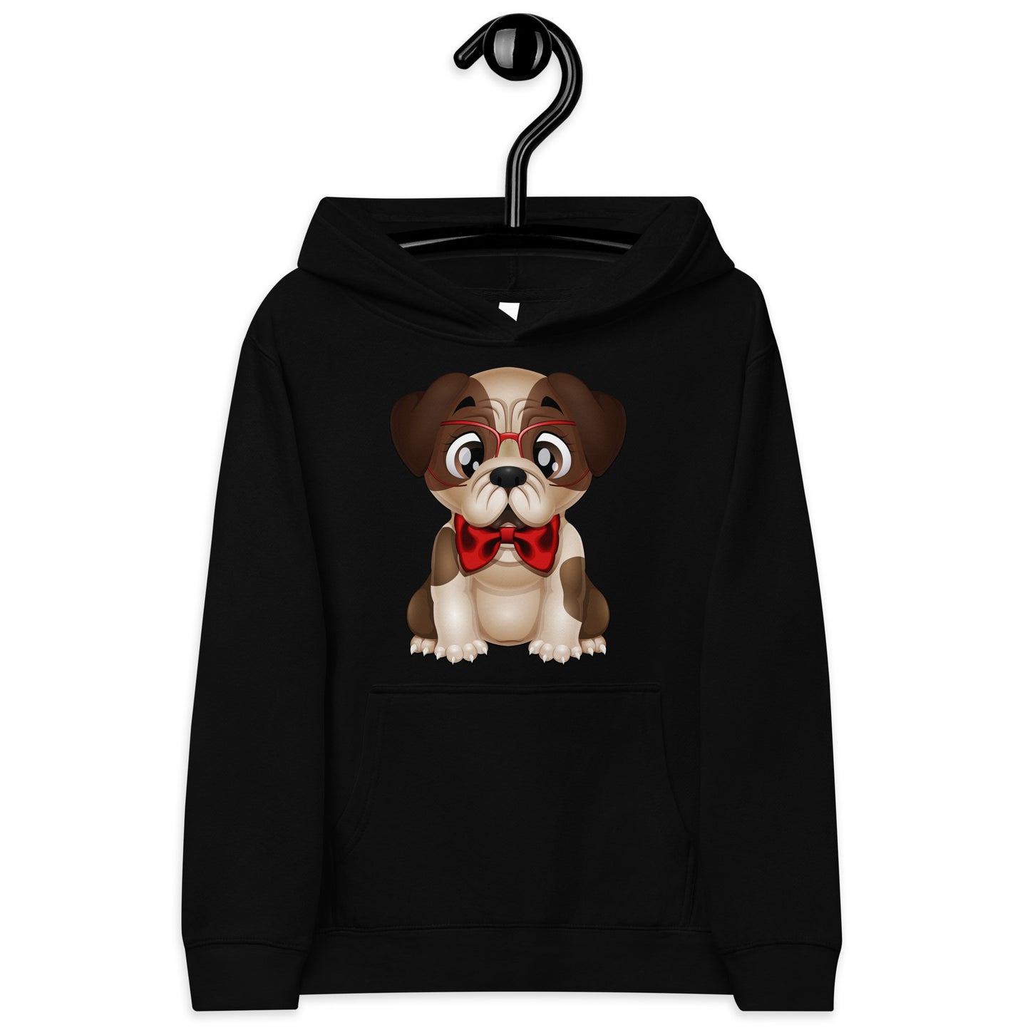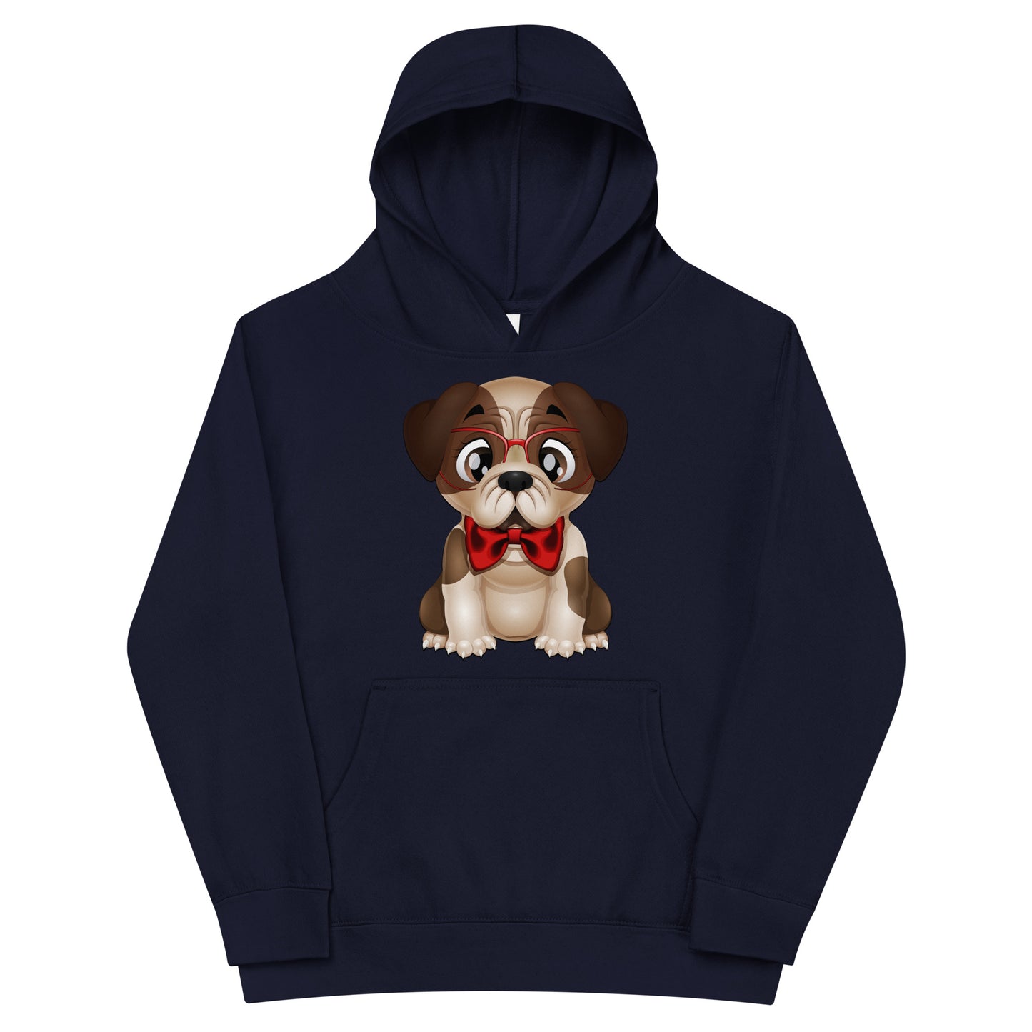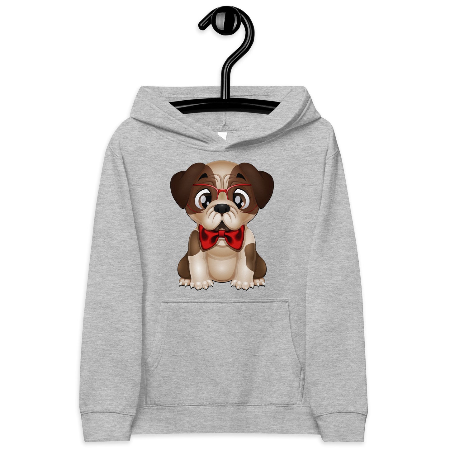 Cute Puppy Dog Pug Wearing Red Bow Hoodie, No. 0225