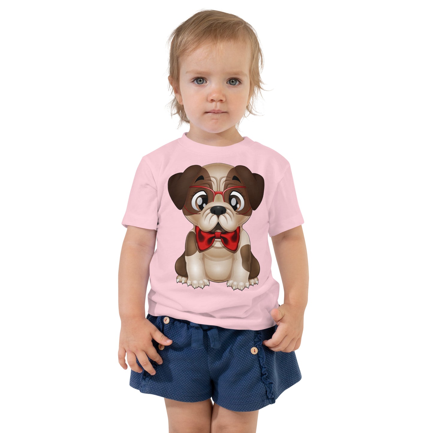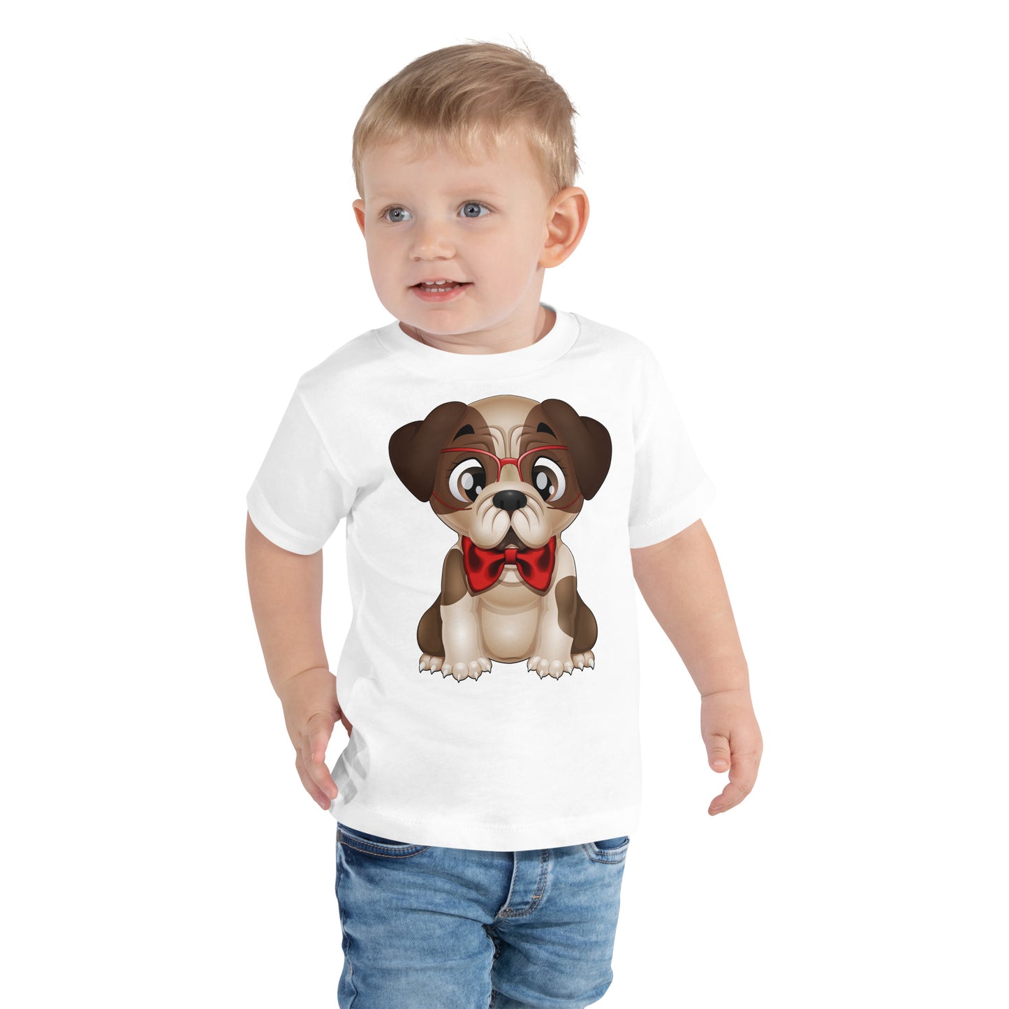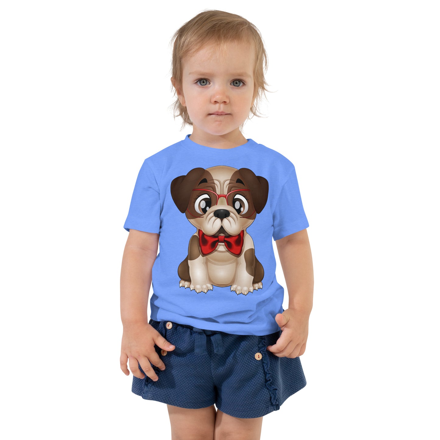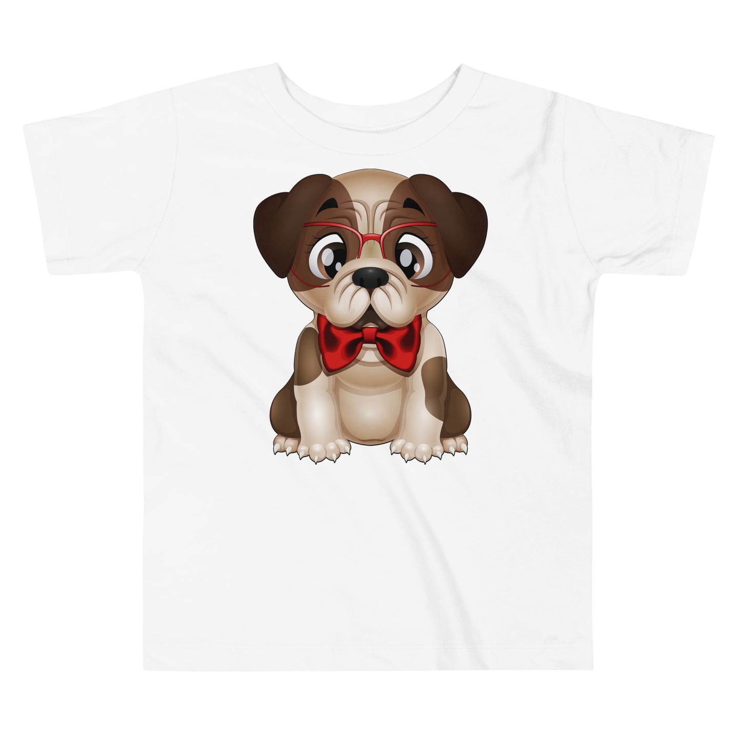 Cute Puppy Dog Pug Wearing Red Bow T-Shirt, No. 0225