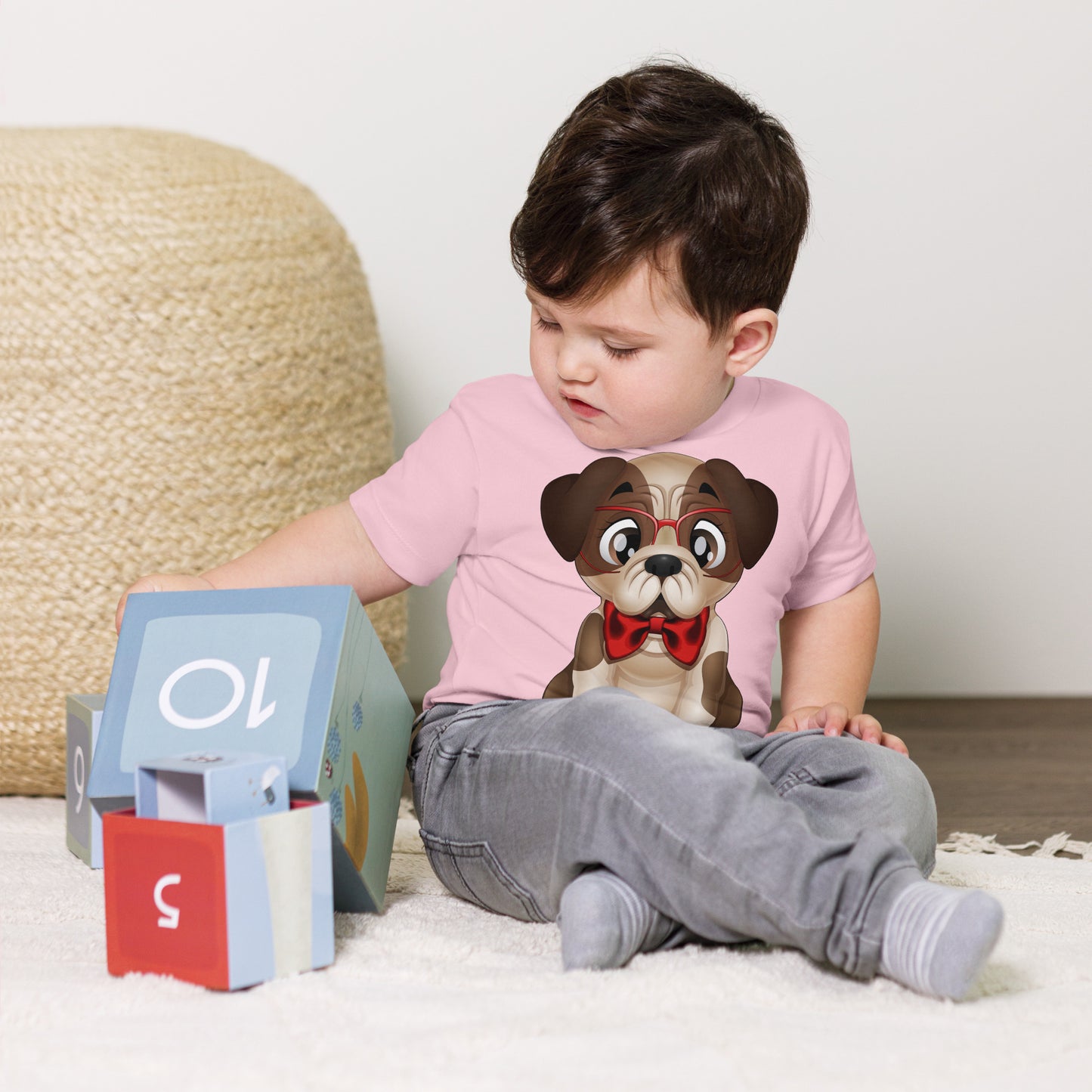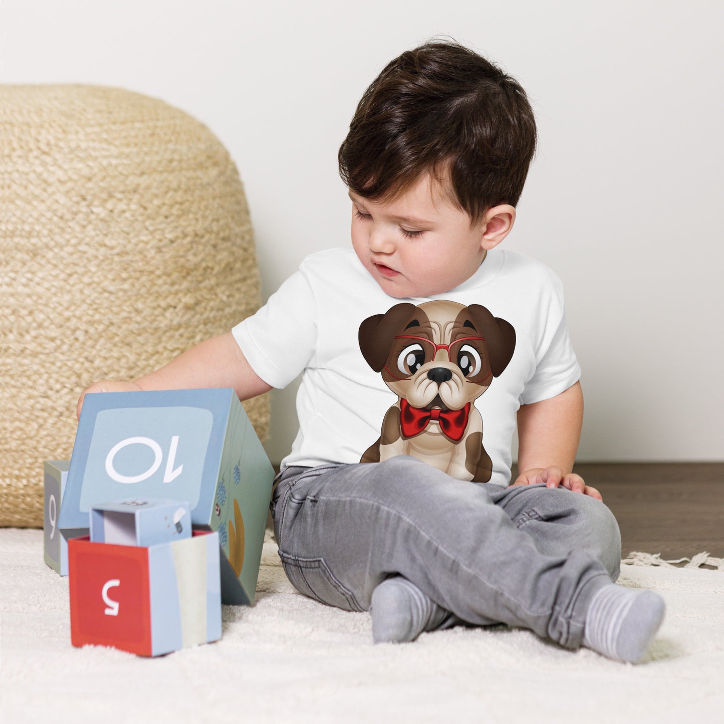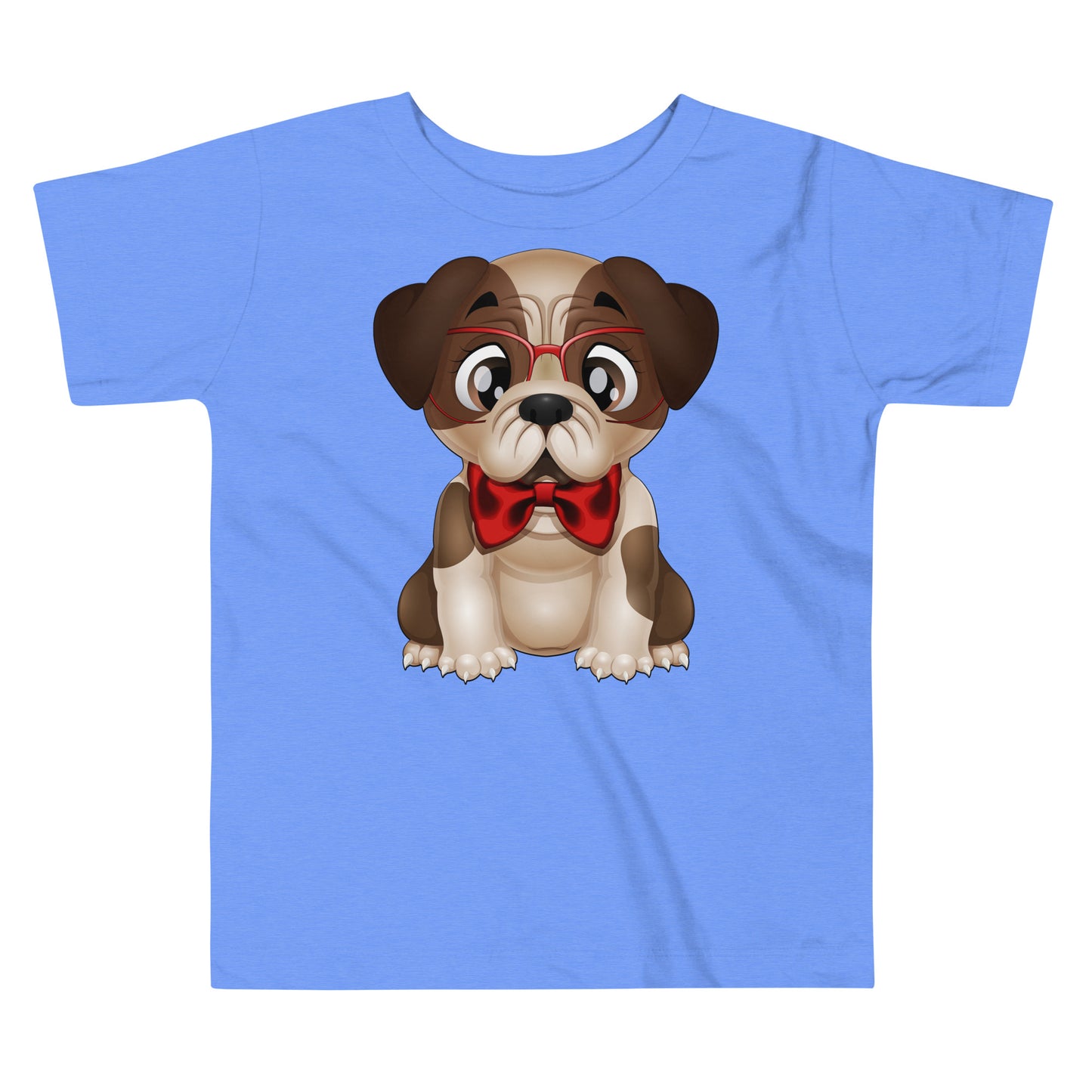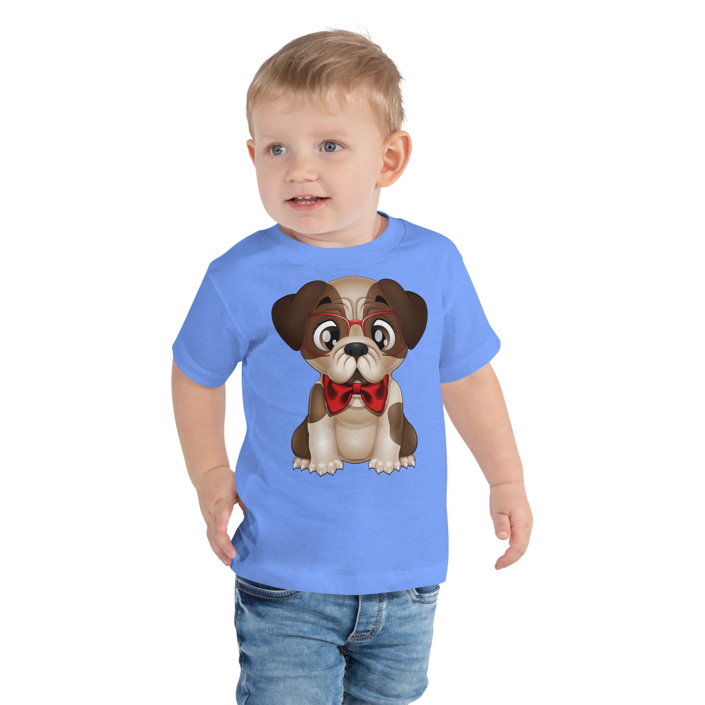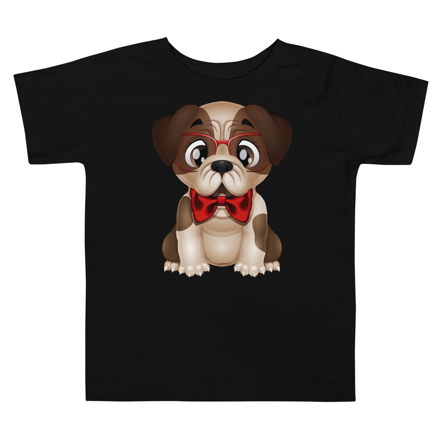 Cute Puppy Dog Pug Wearing Red Bow T-Shirt, No. 0225