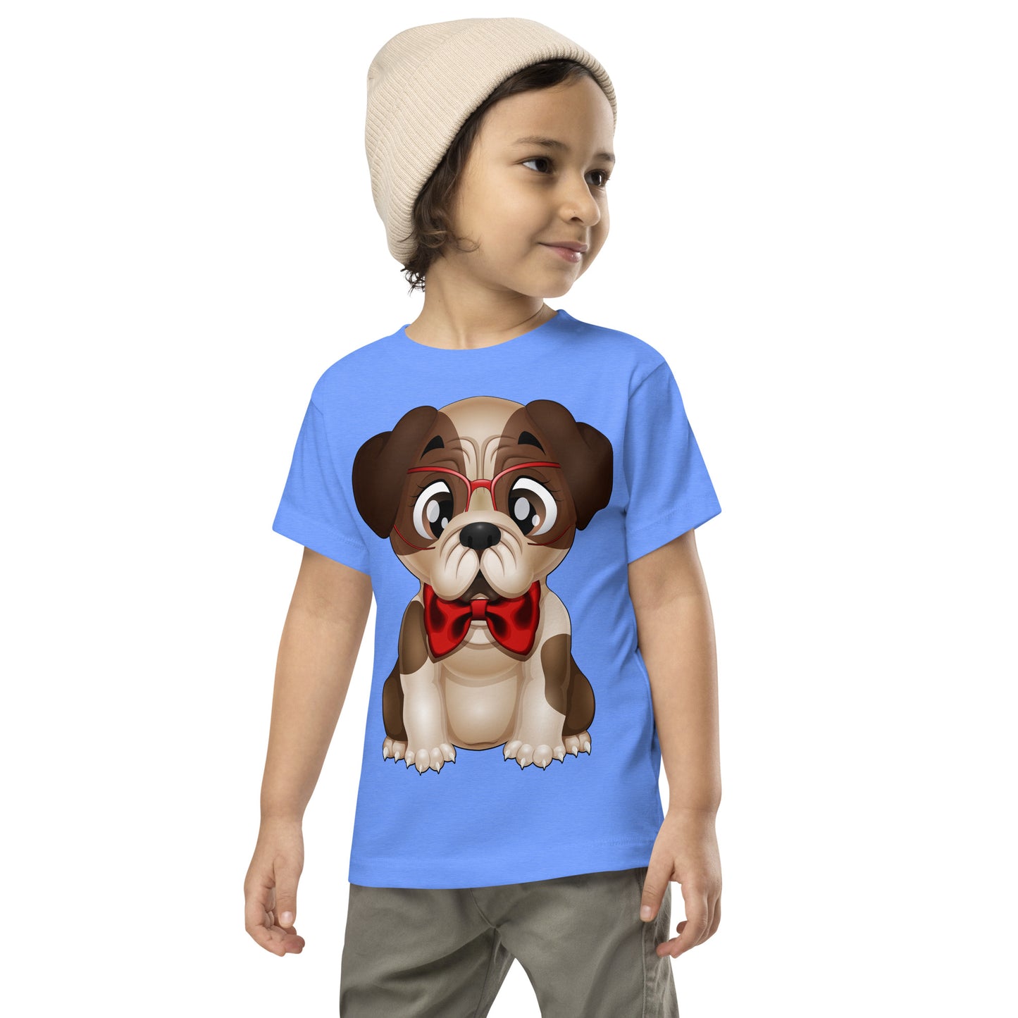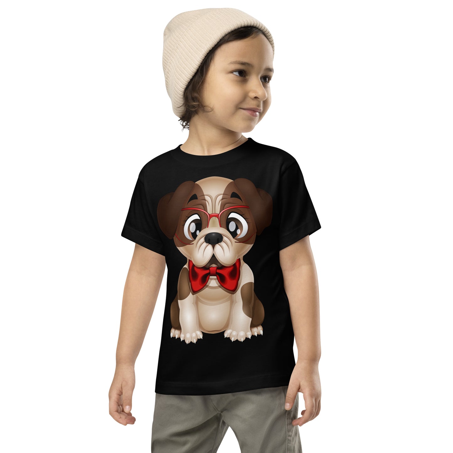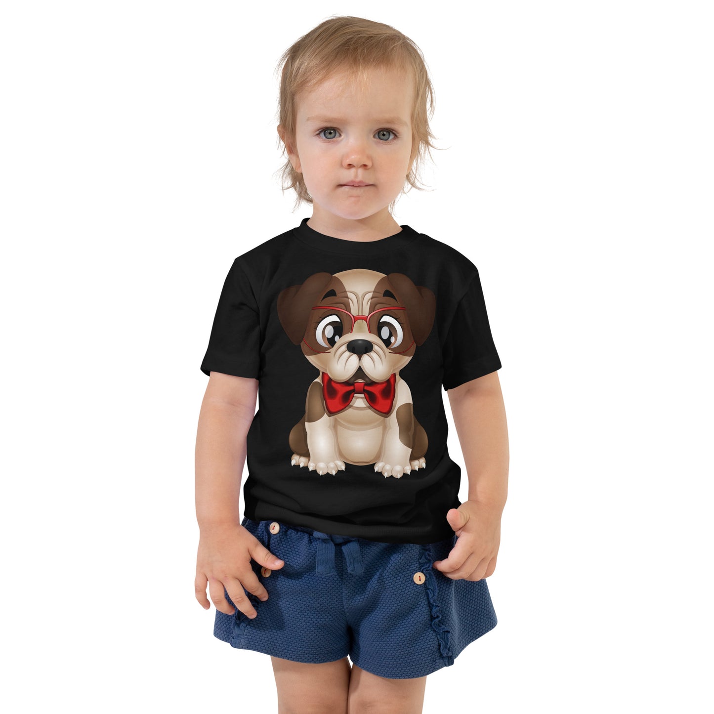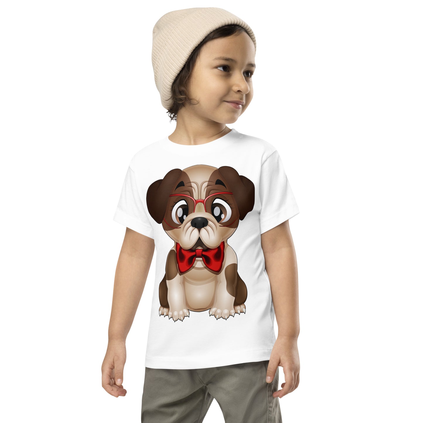 Cute Puppy Dog Pug Wearing Red Bow T-Shirt, No. 0225