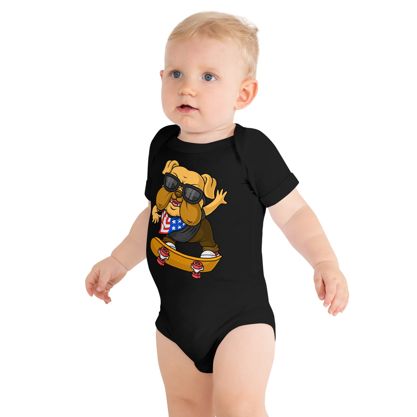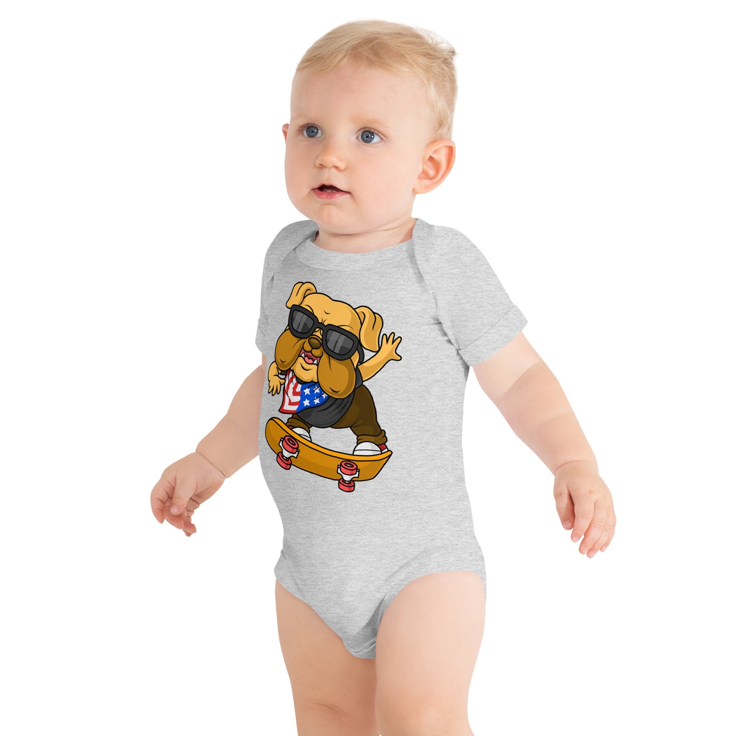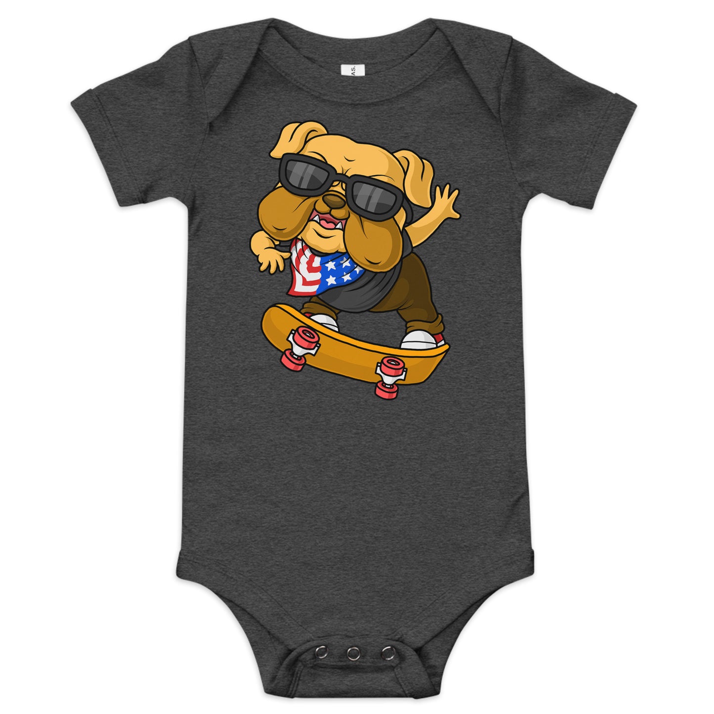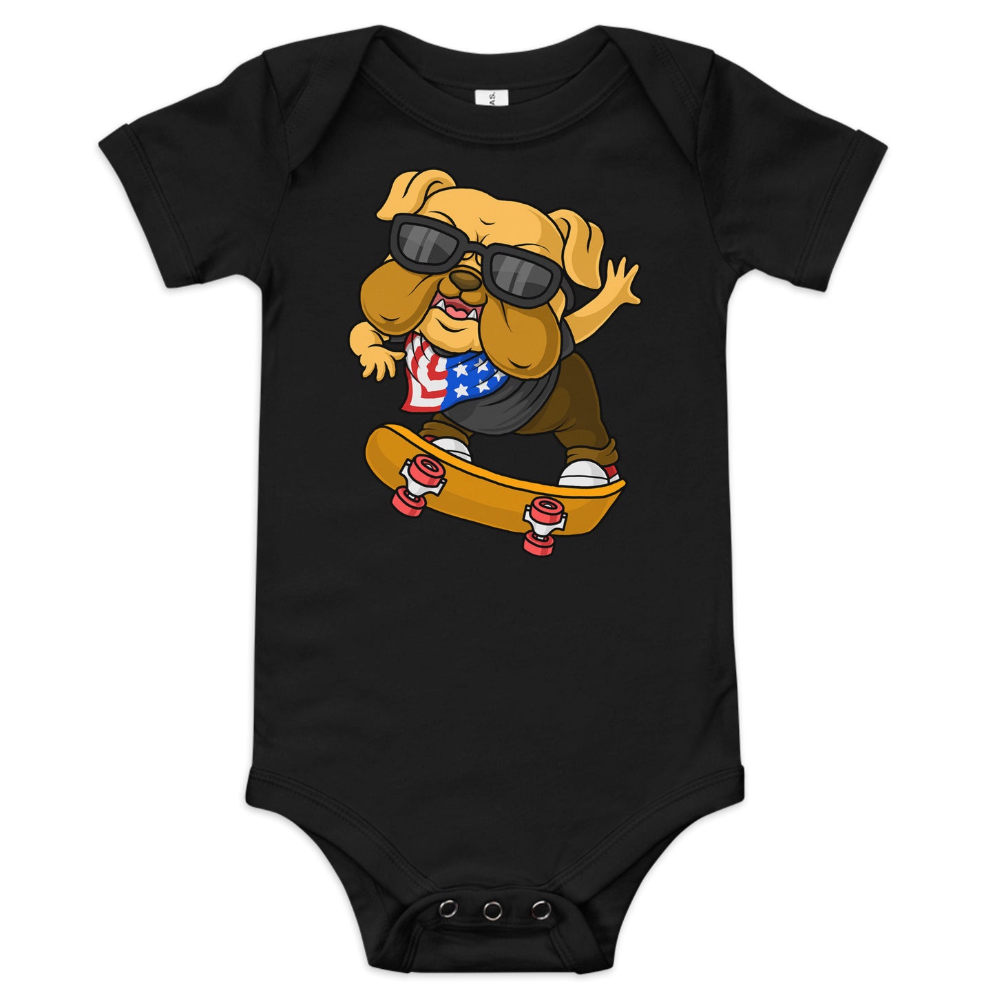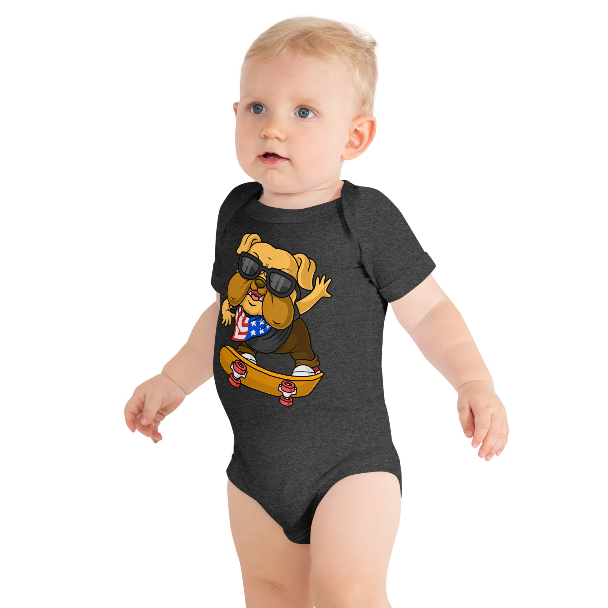 Funny Bulldog Dog Playing Skateboard Bodysuit, No. 0249