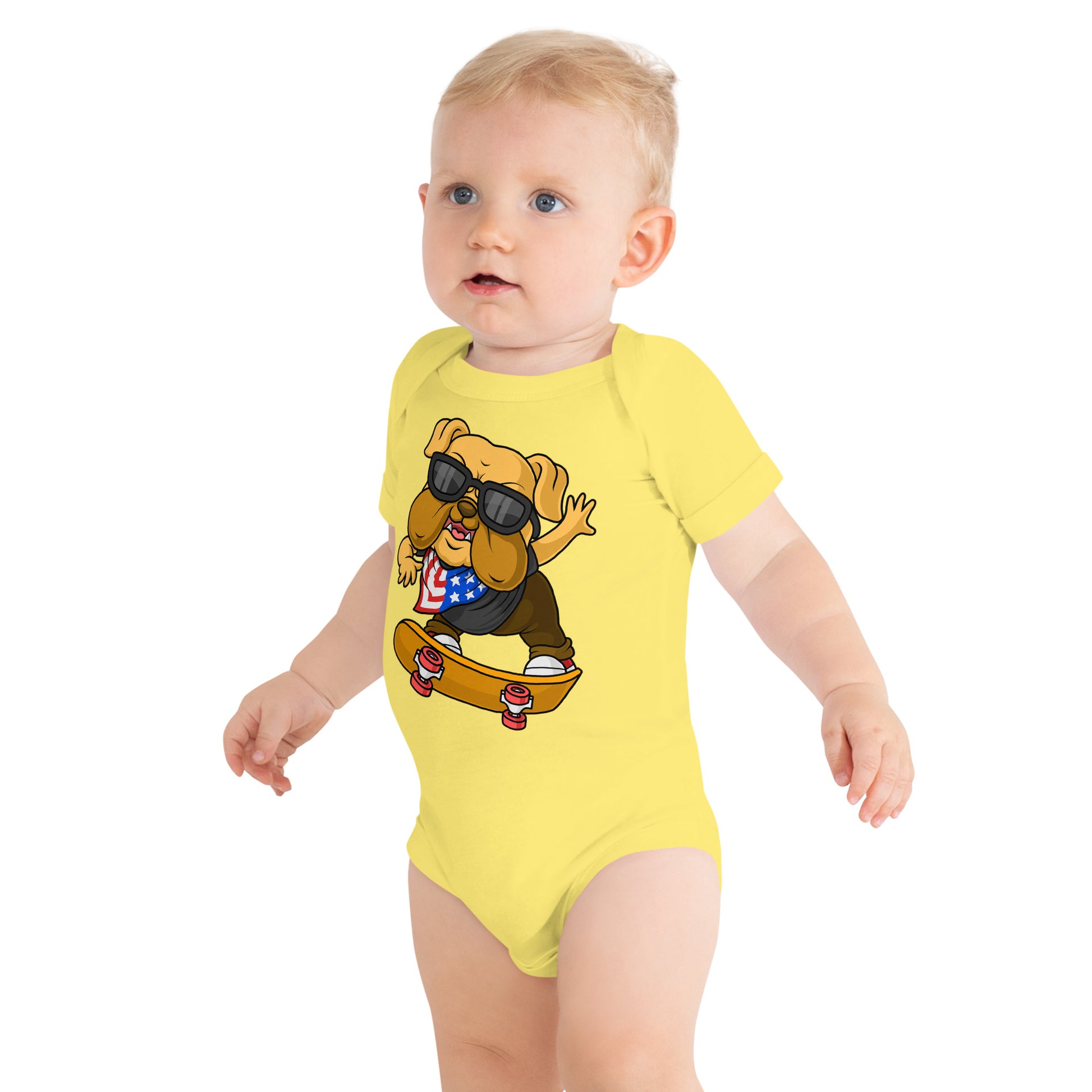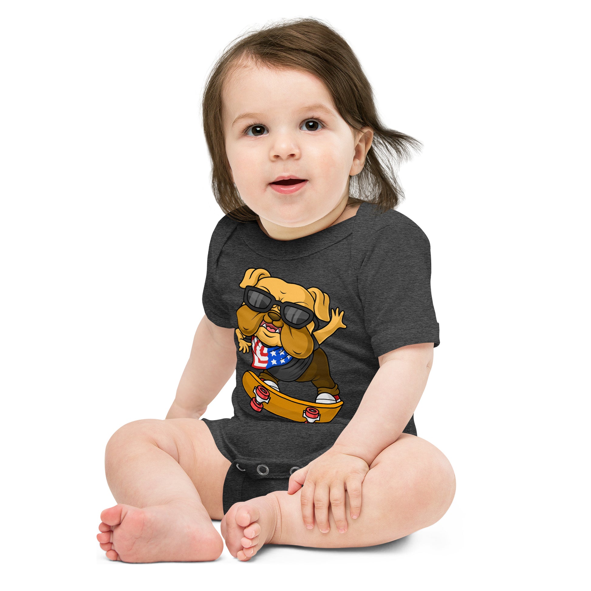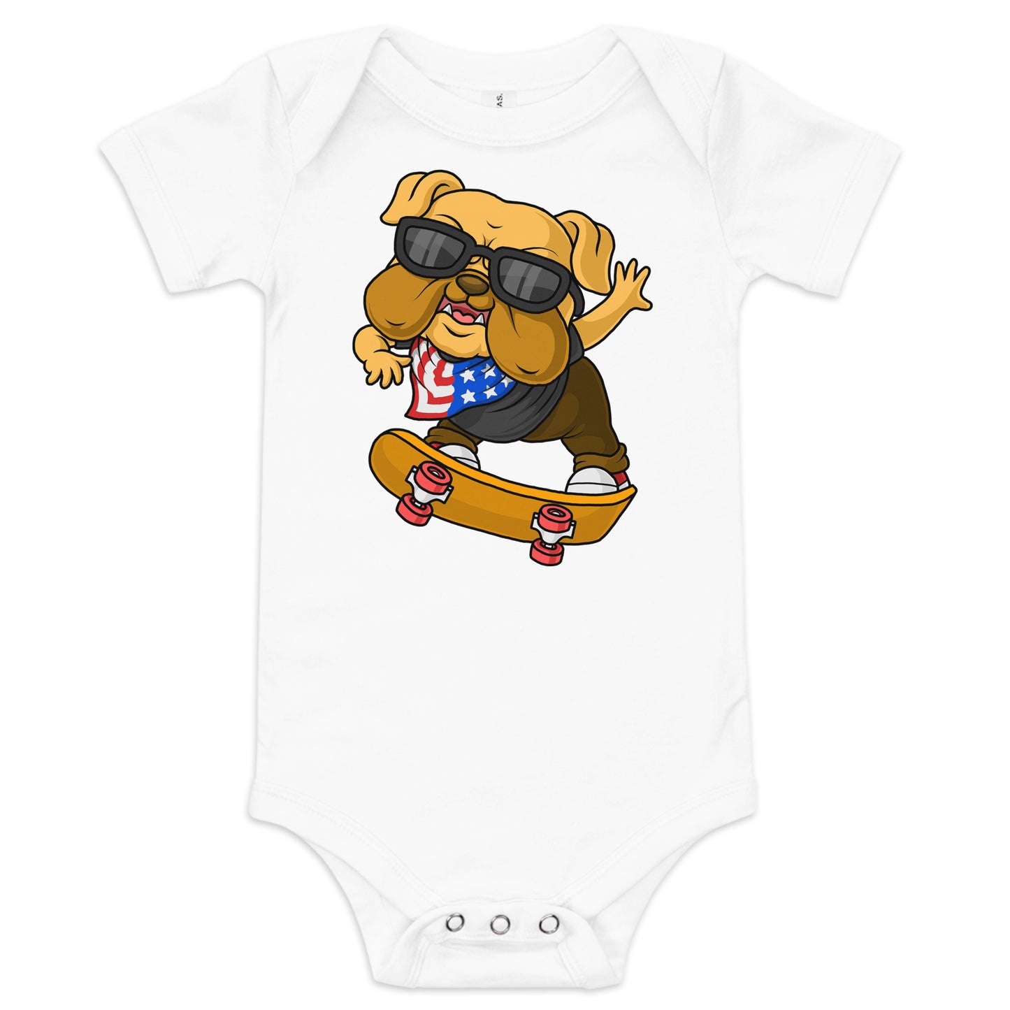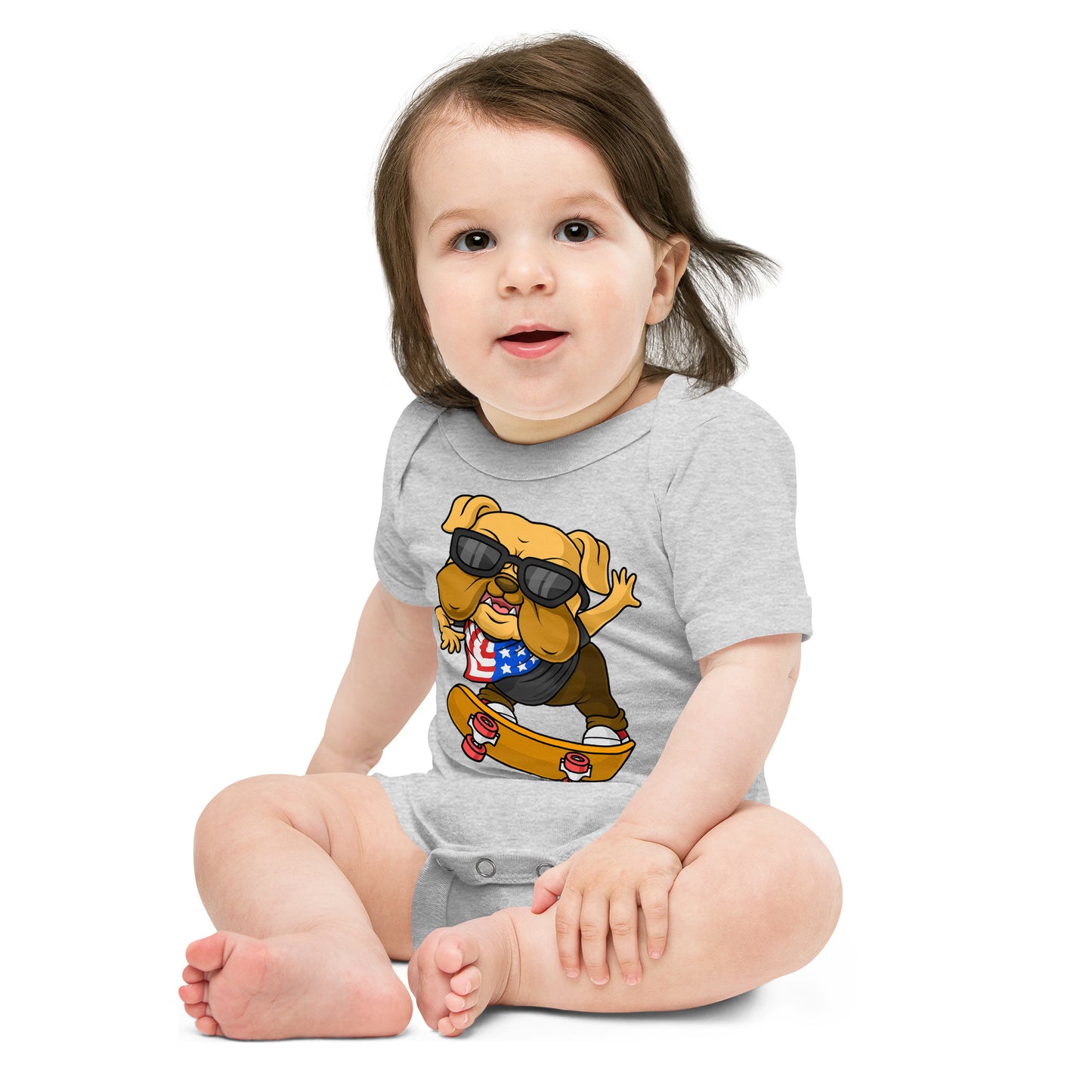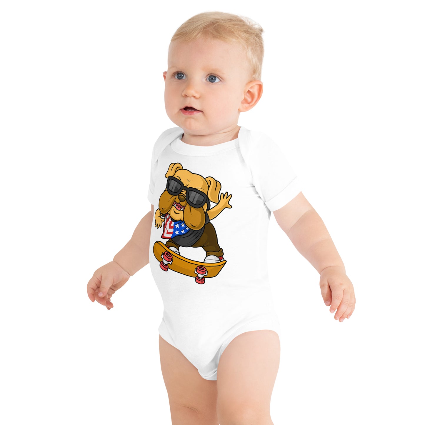 Funny Bulldog Dog Playing Skateboard Bodysuit, No. 0249