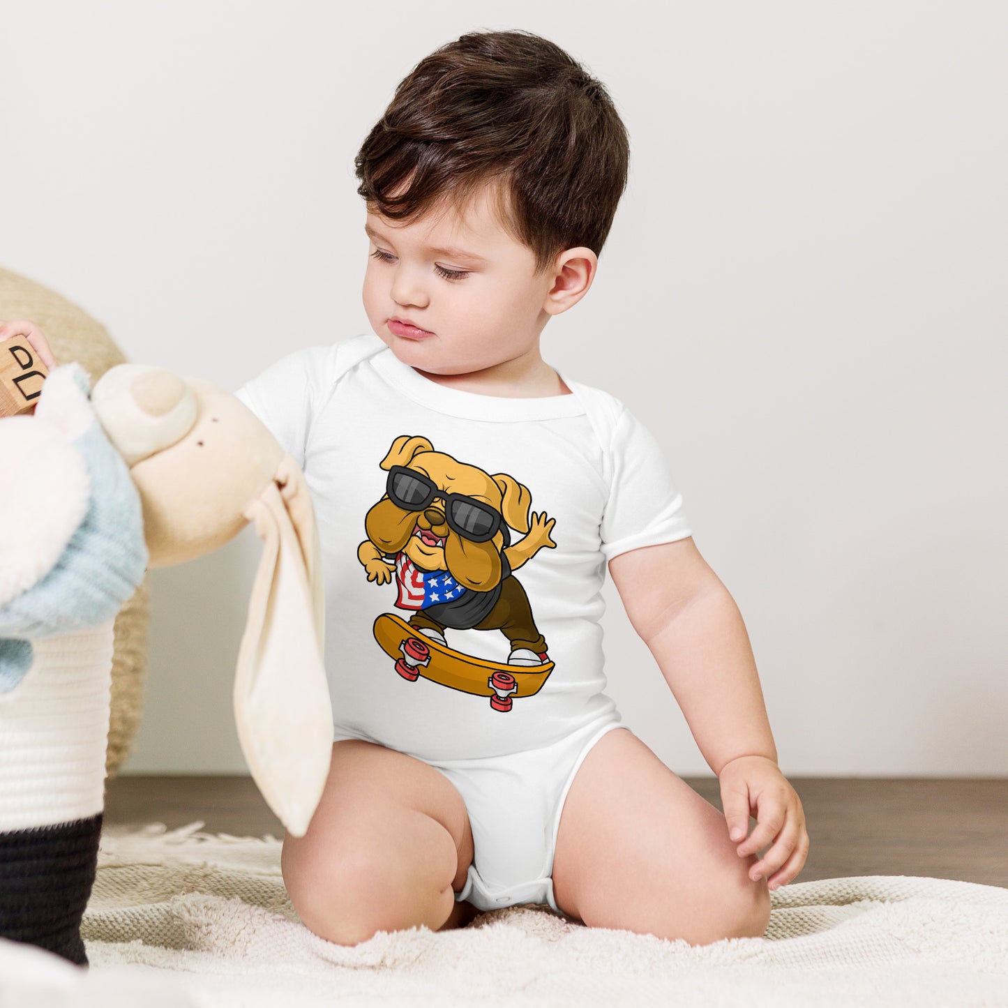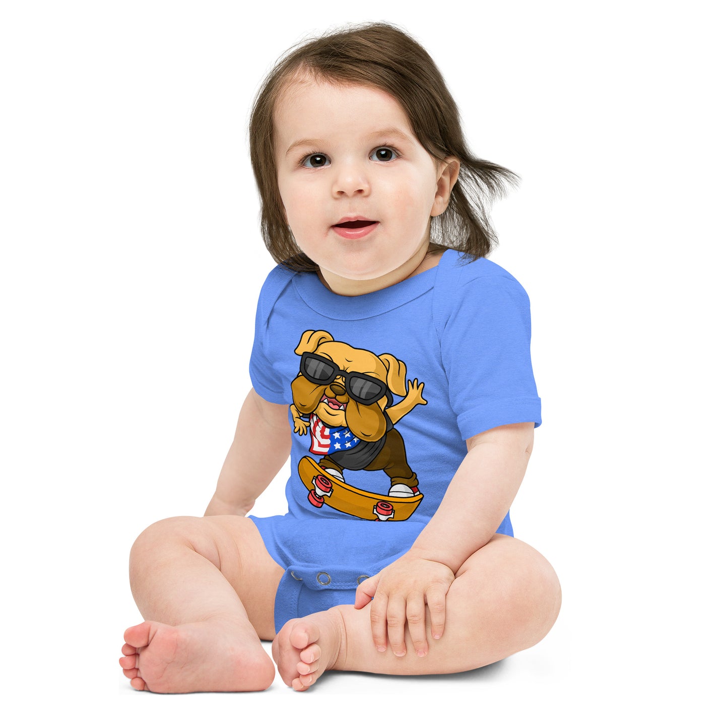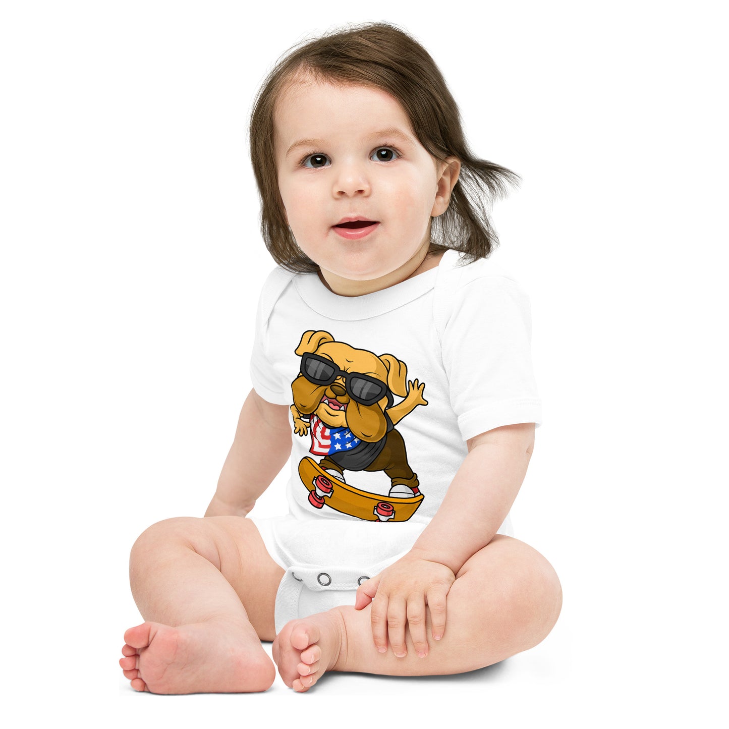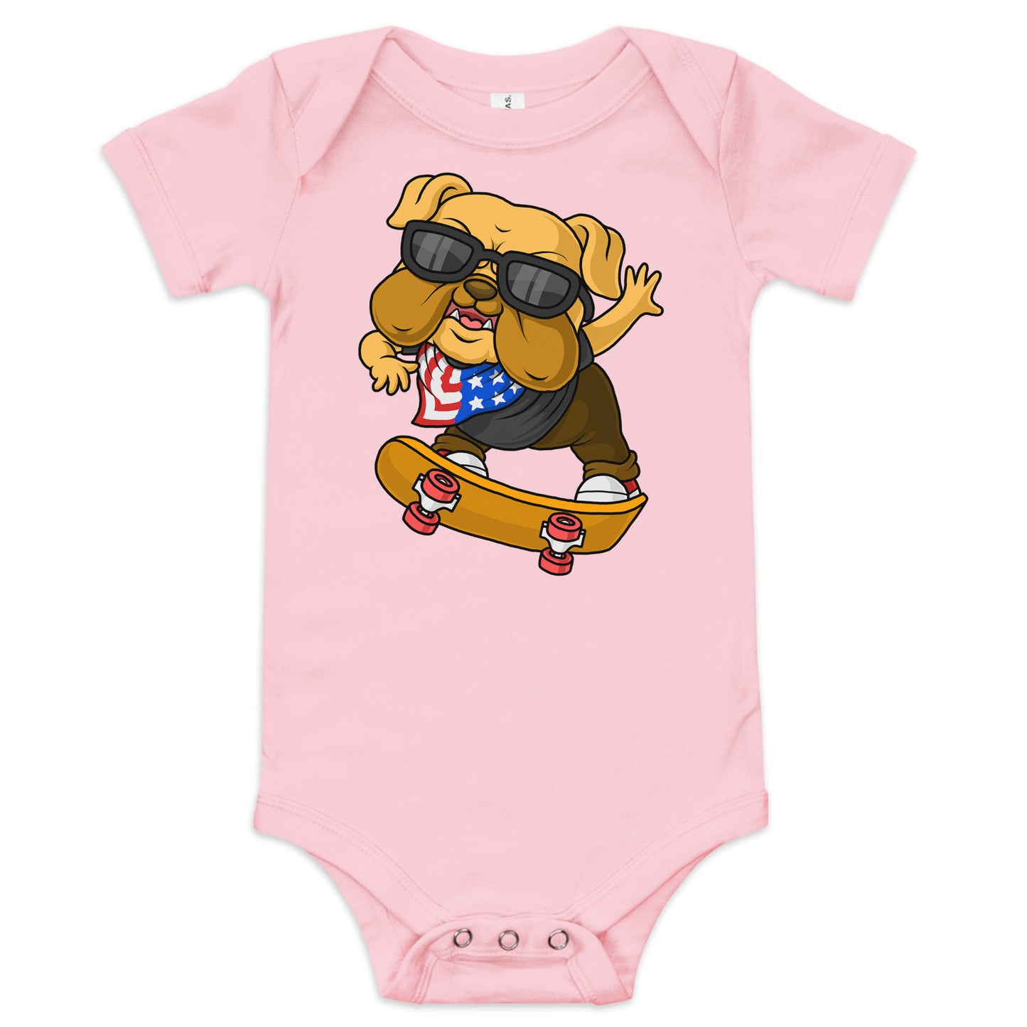 Funny Bulldog Dog Playing Skateboard Bodysuit, No. 0249
