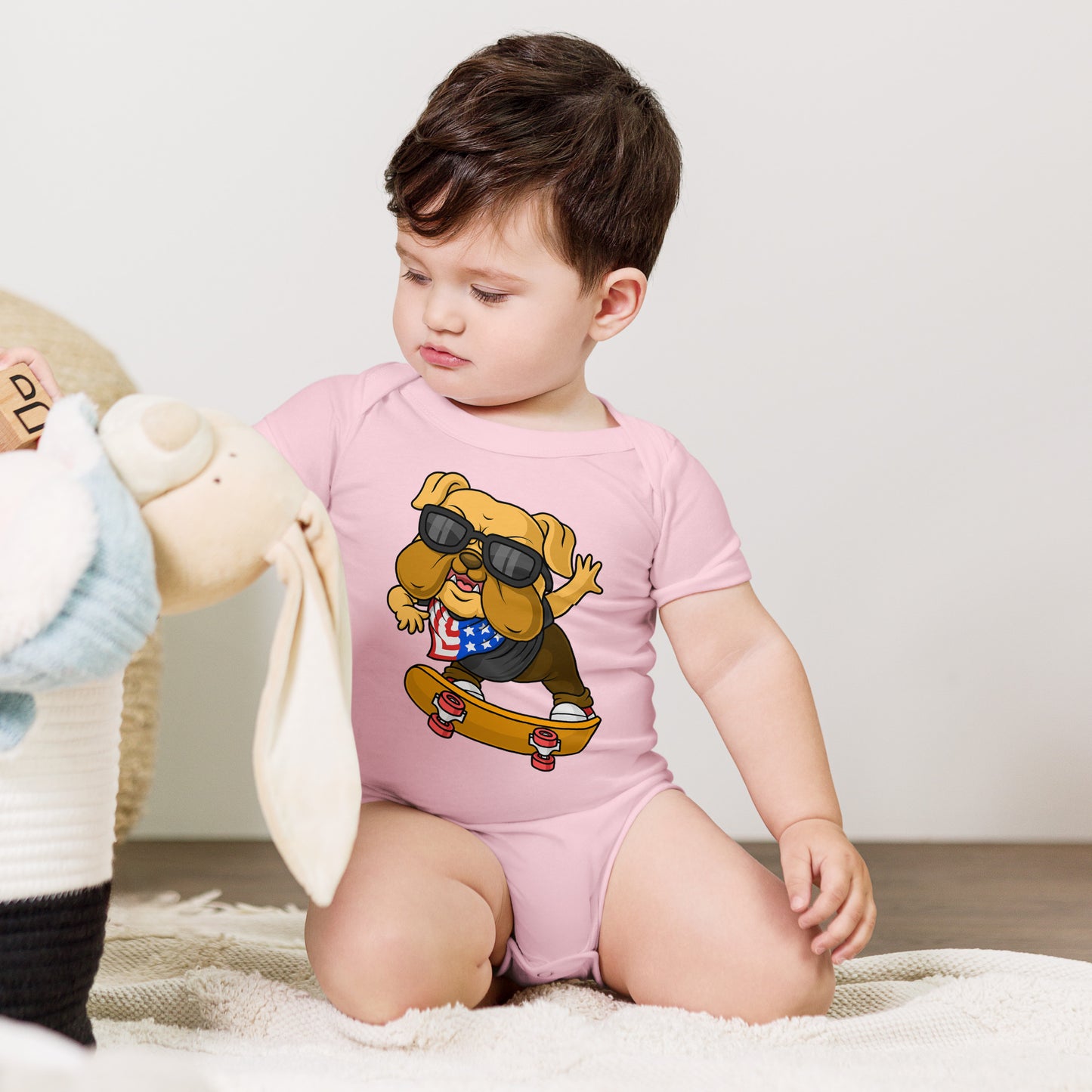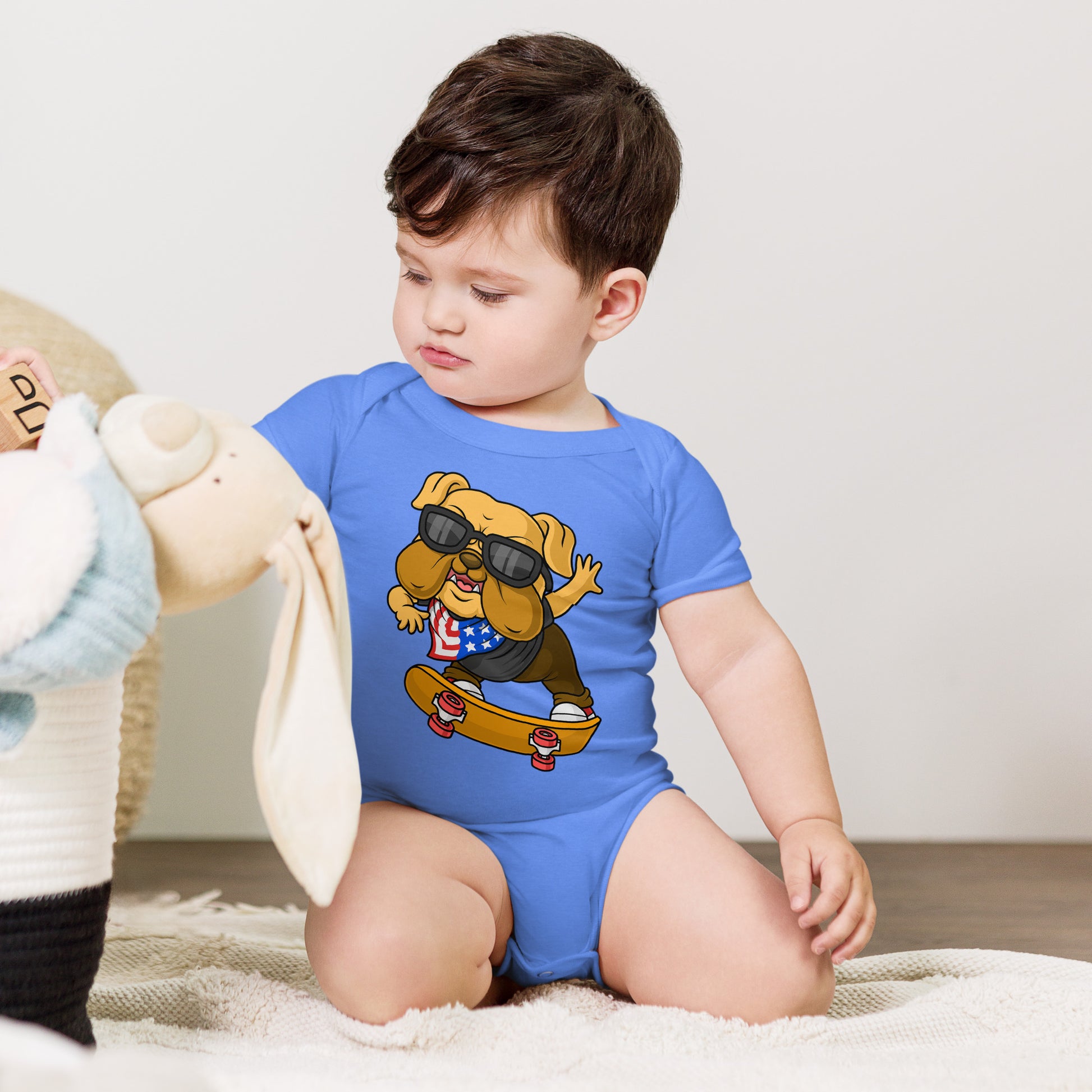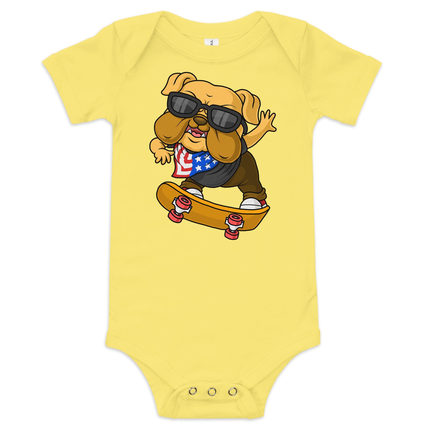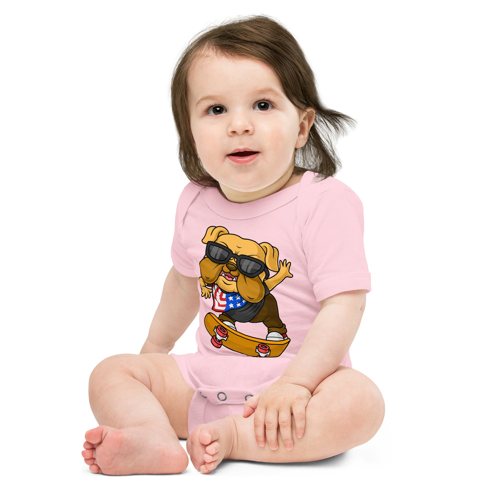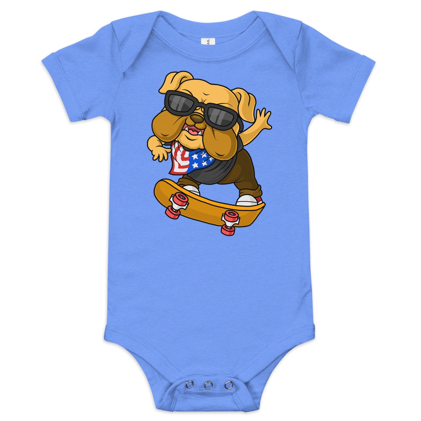 Funny Bulldog Dog Playing Skateboard Bodysuit, No. 0249