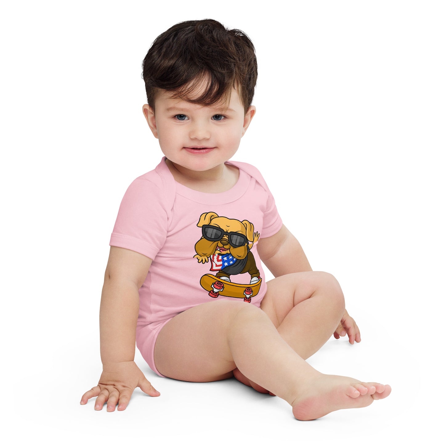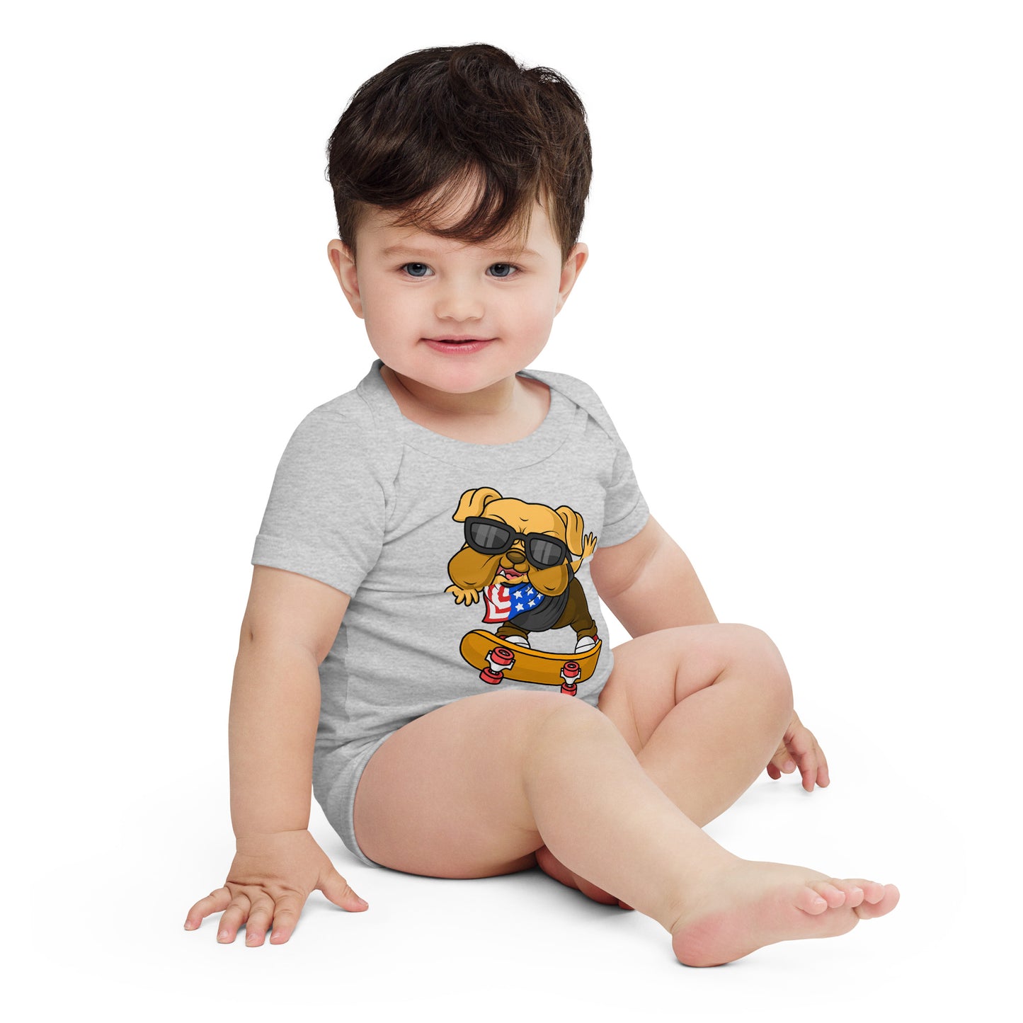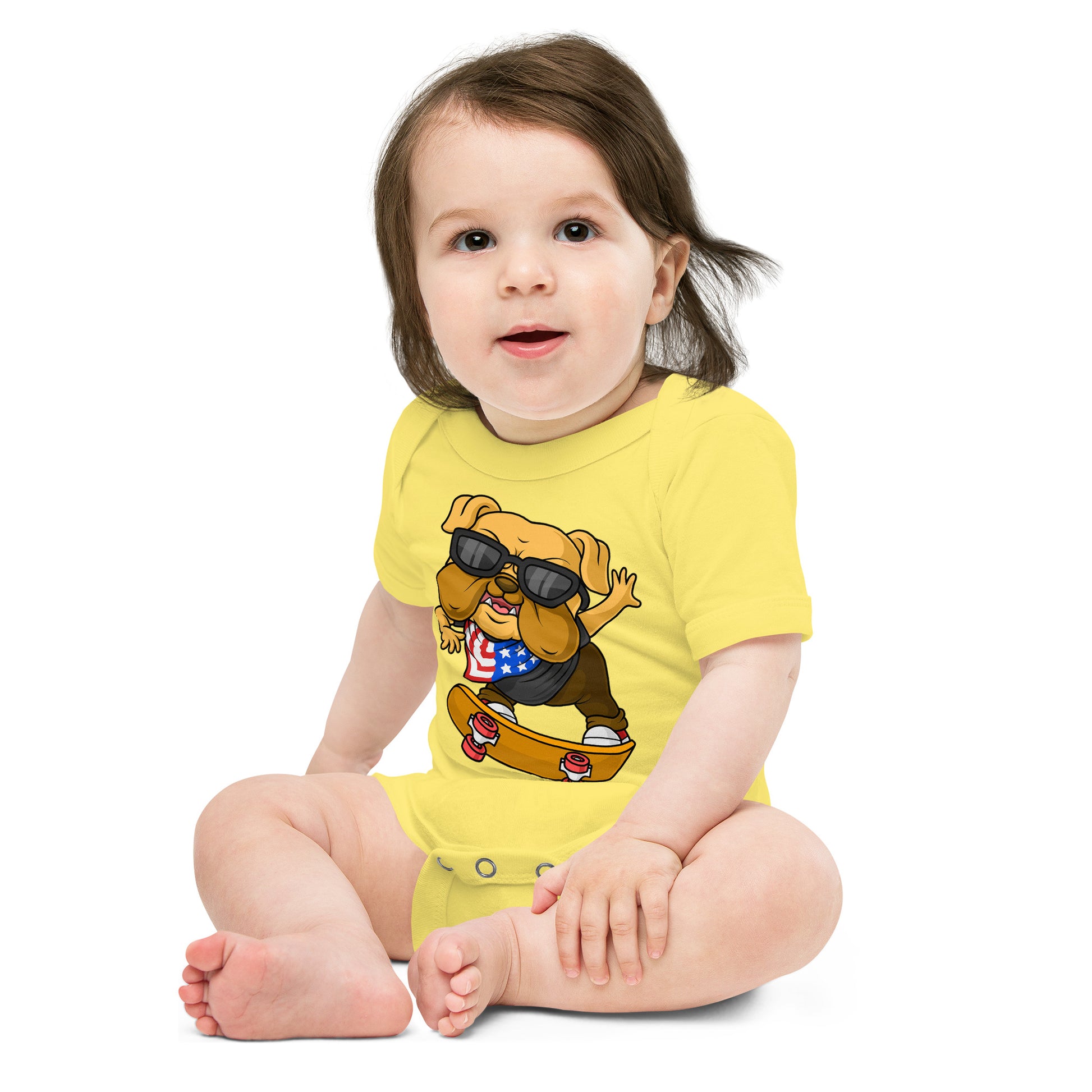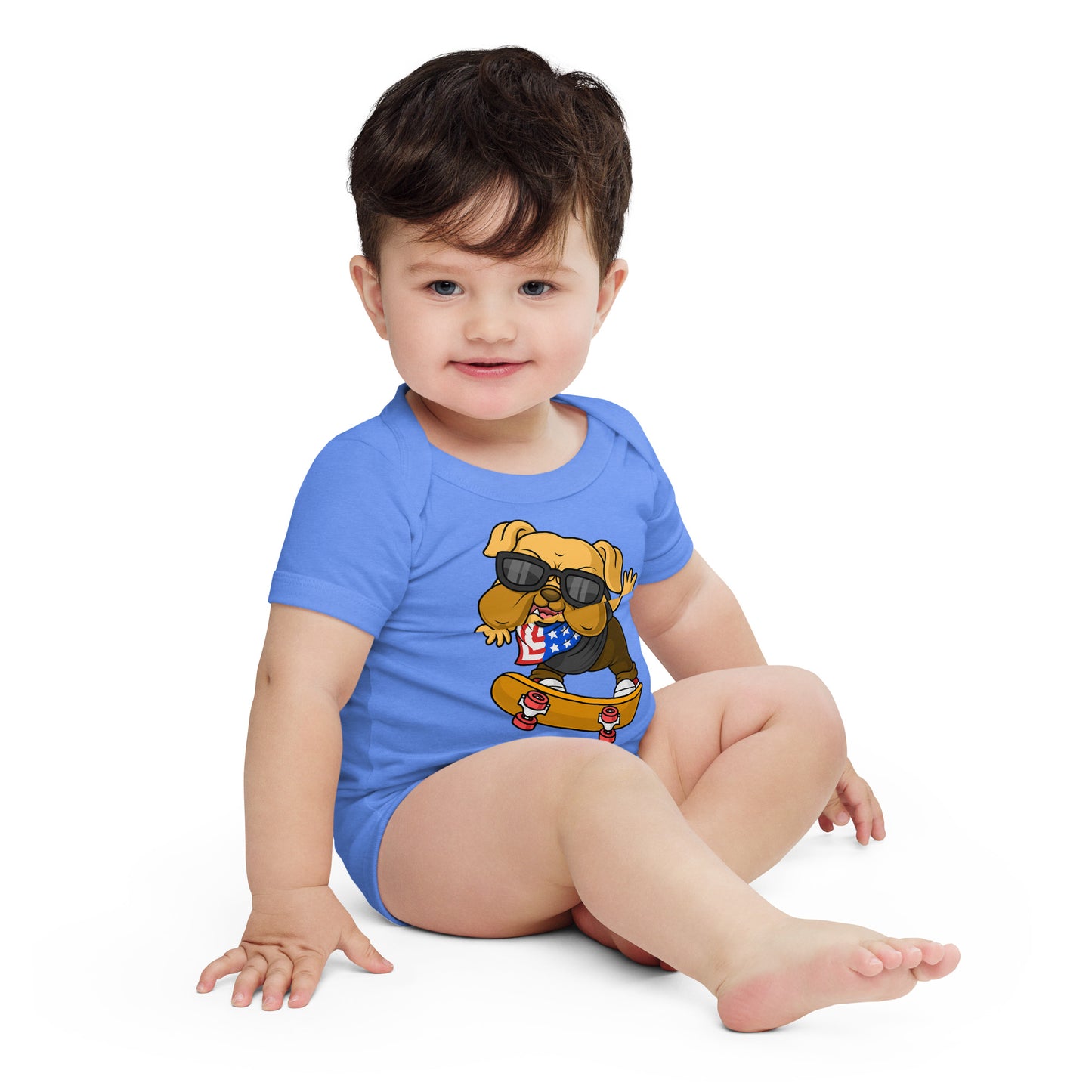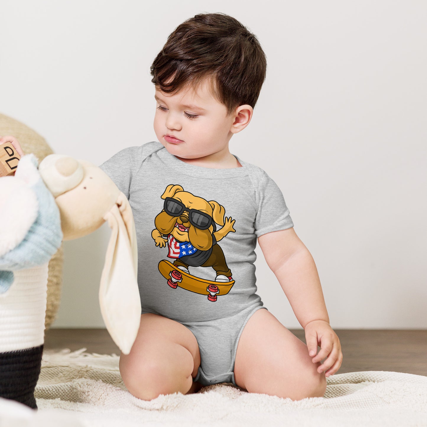 Funny Bulldog Dog Playing Skateboard Bodysuit, No. 0249