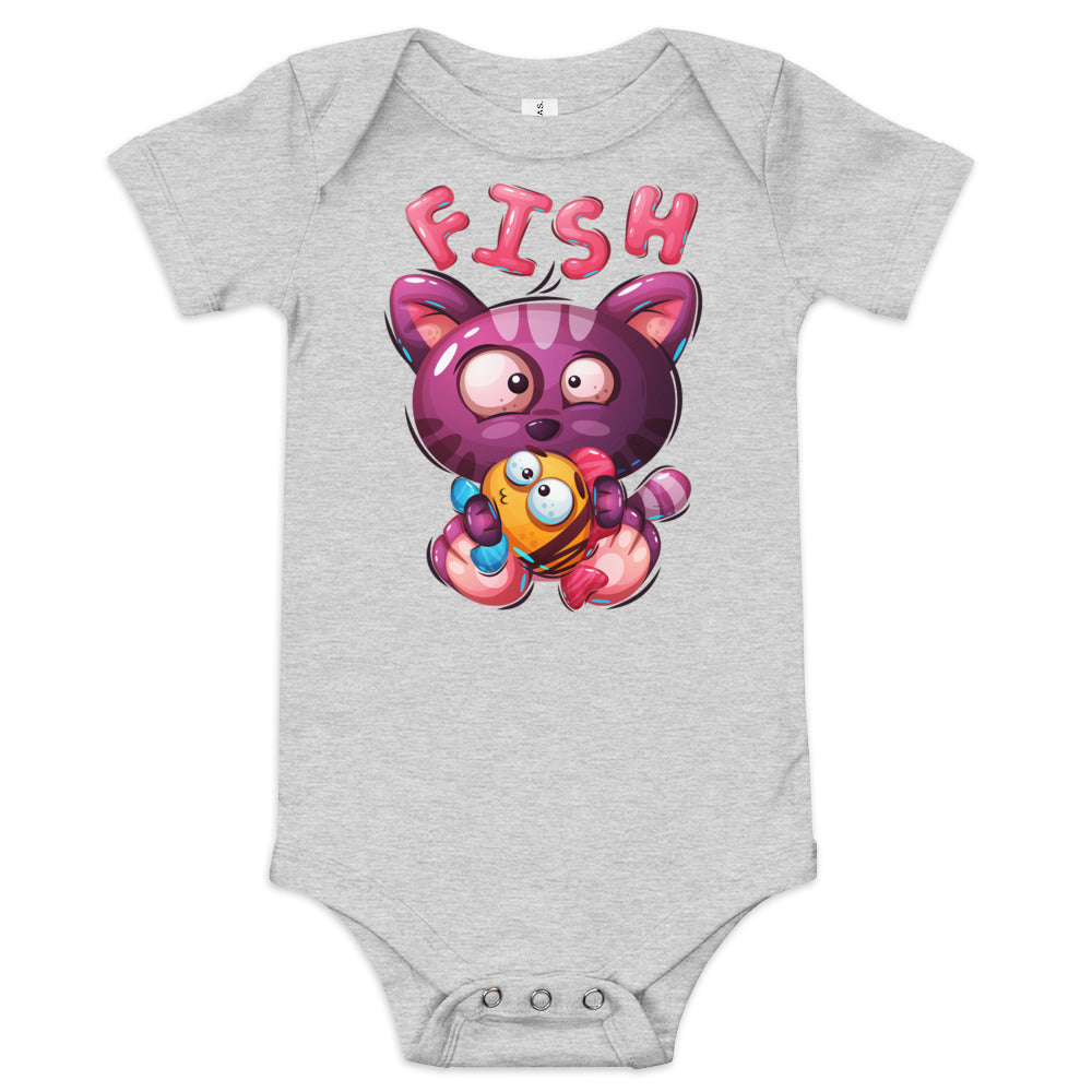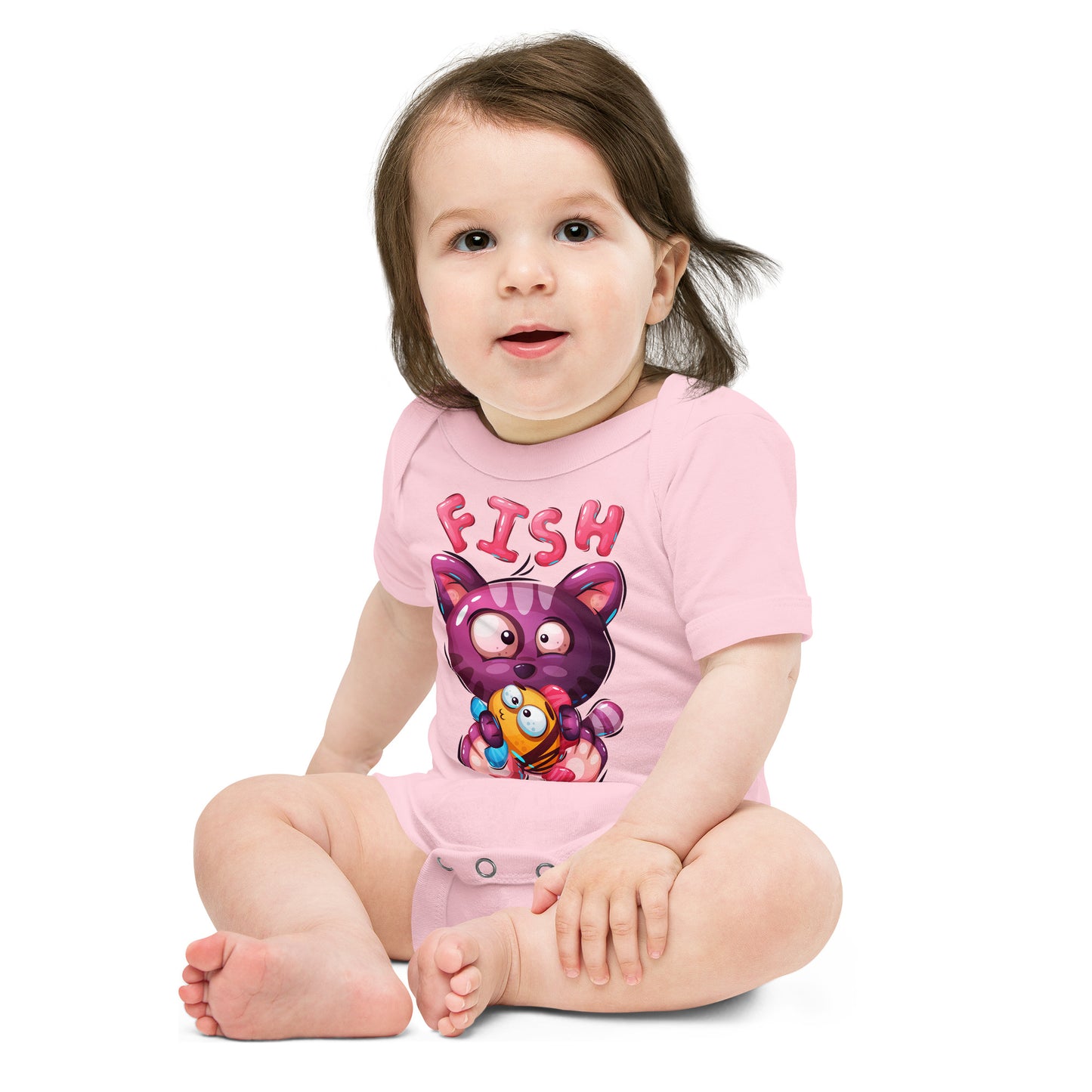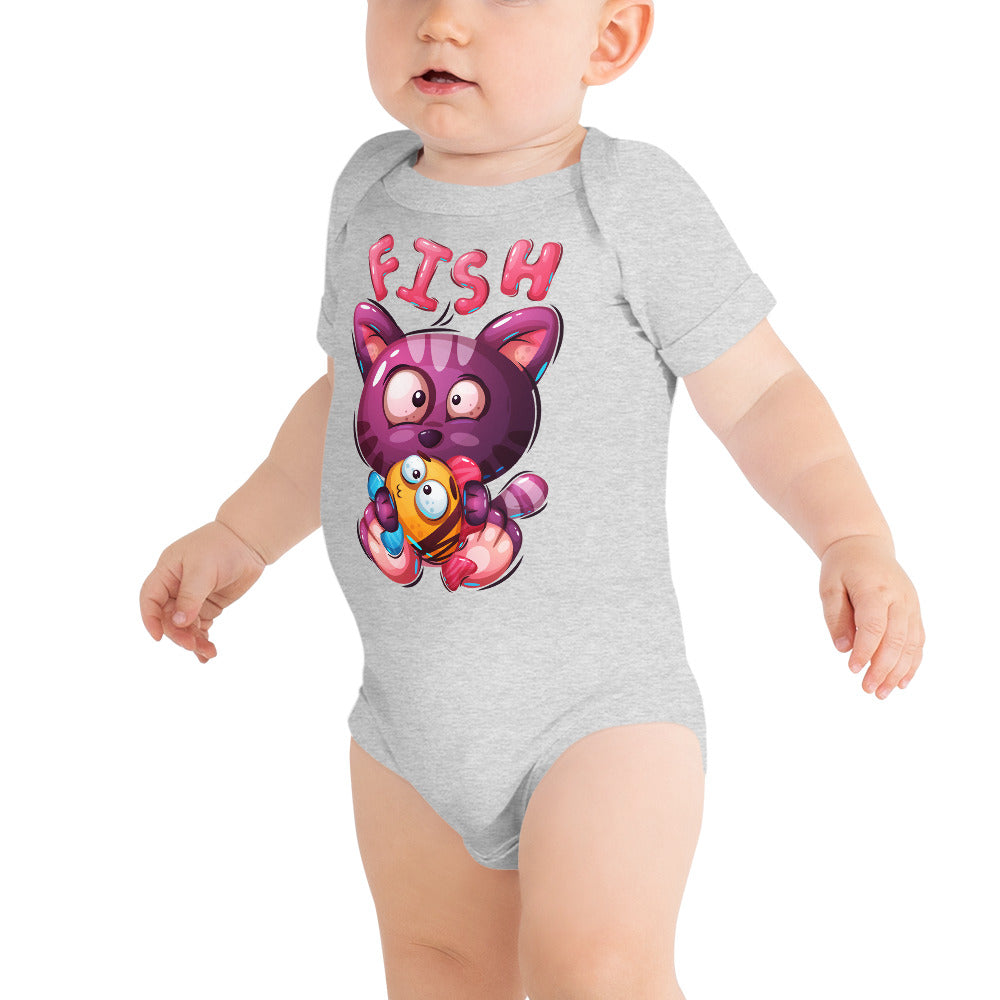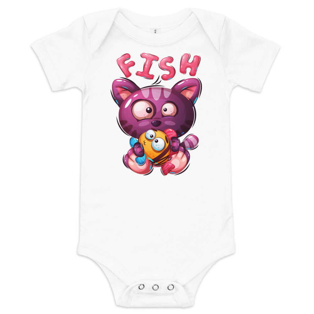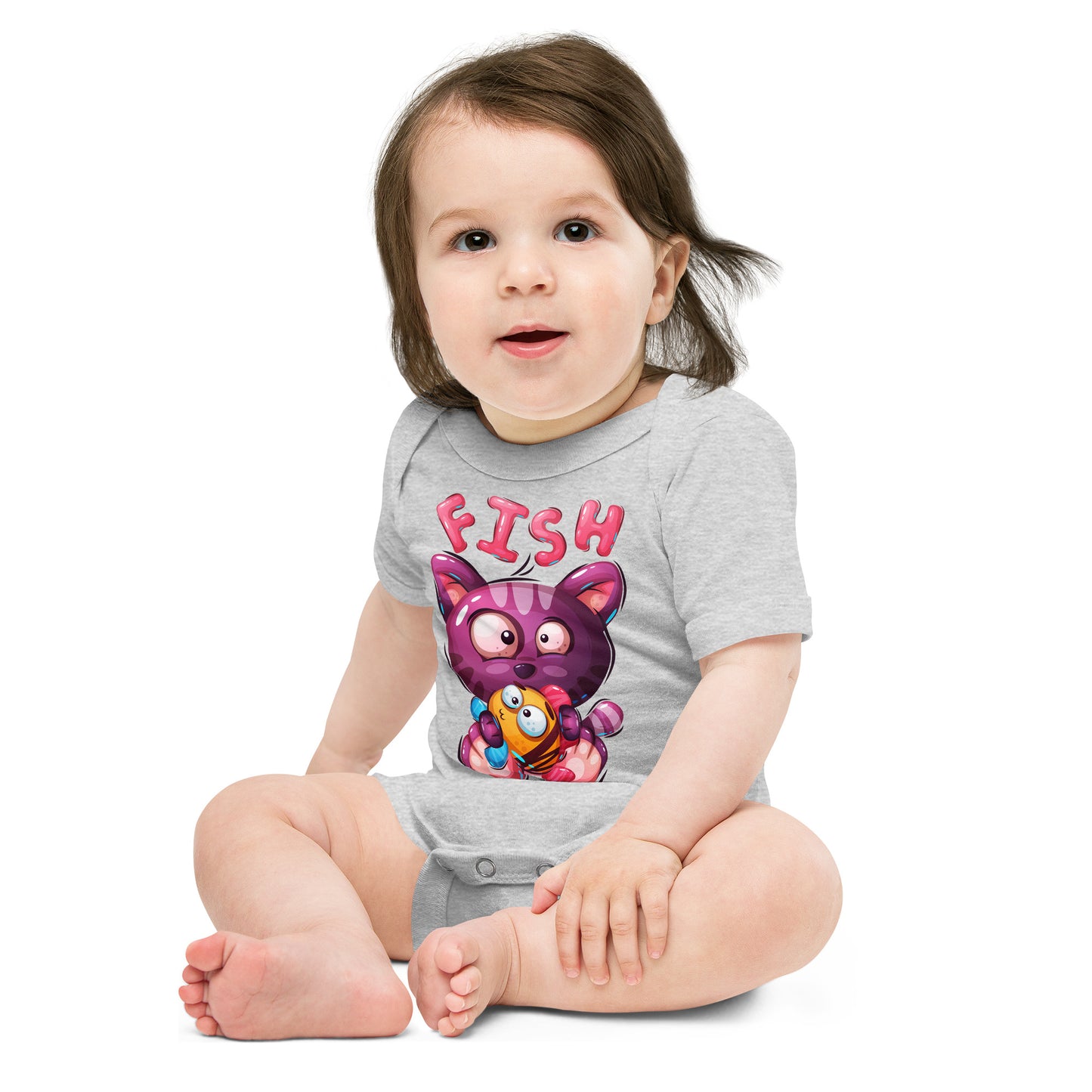Funny Kitty Cat with Fish Bodysuit, No. 0425
