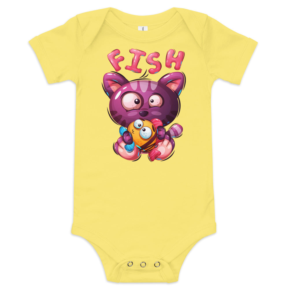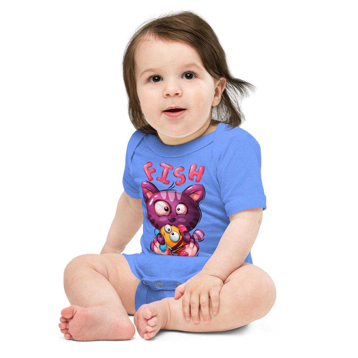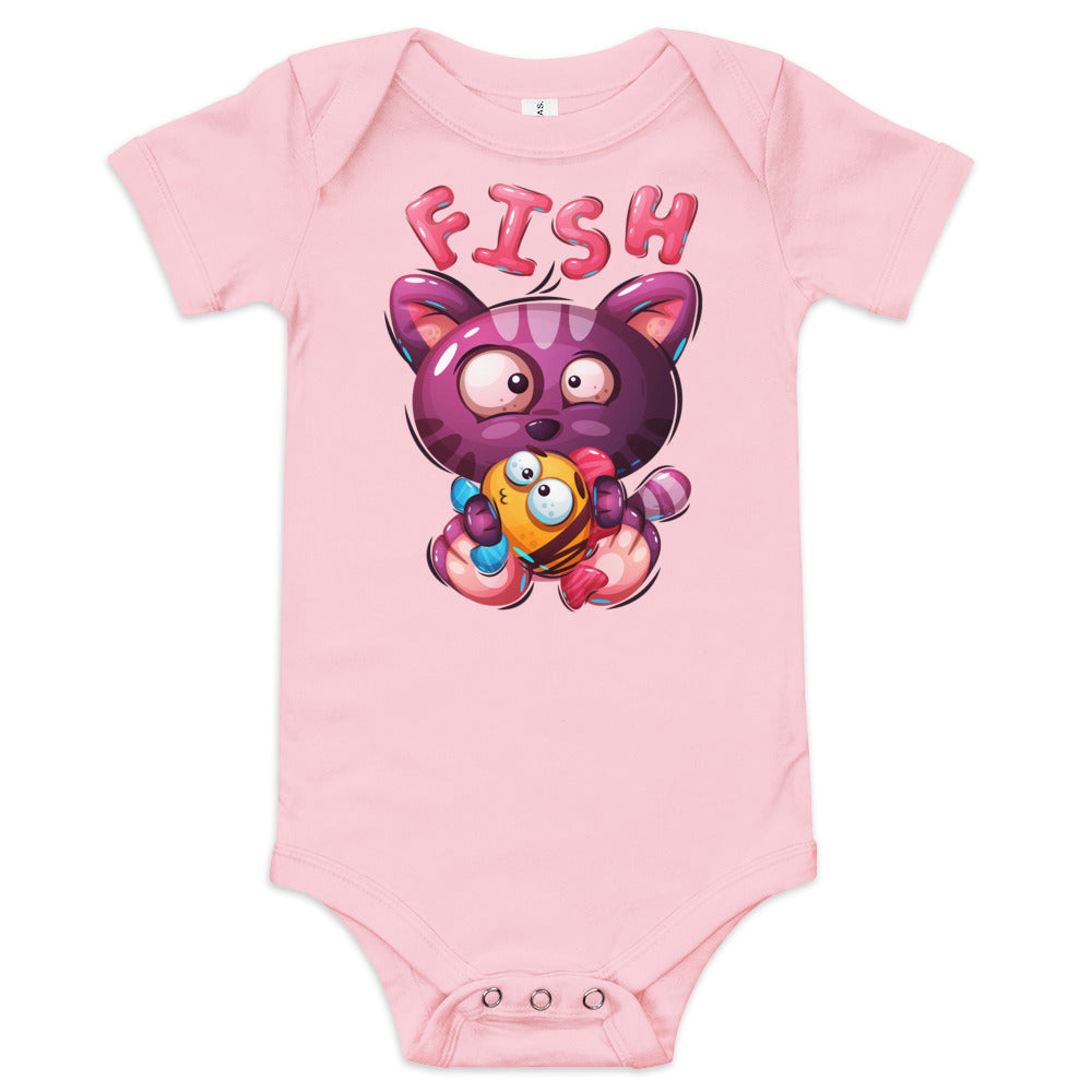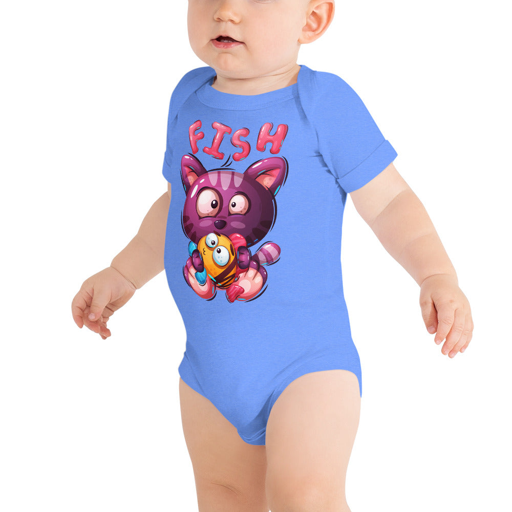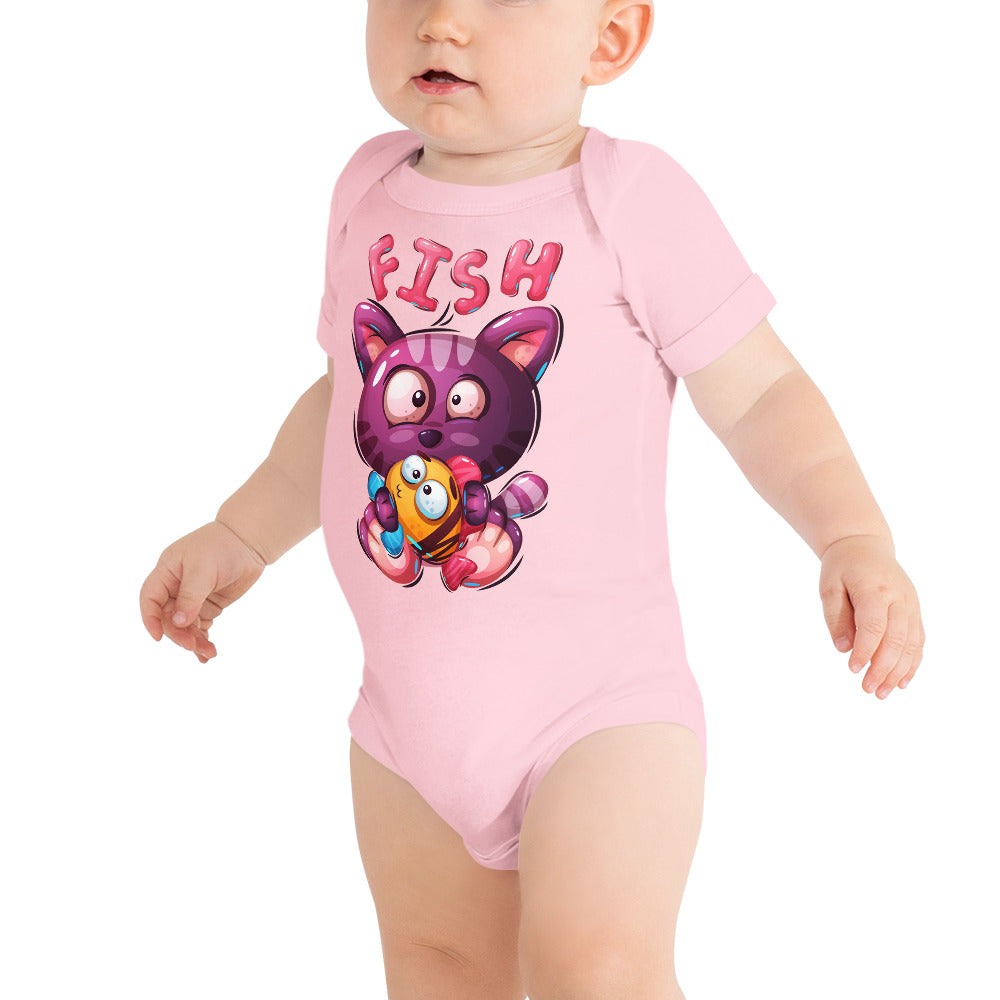 Funny Kitty Cat with Fish Bodysuit, No. 0425