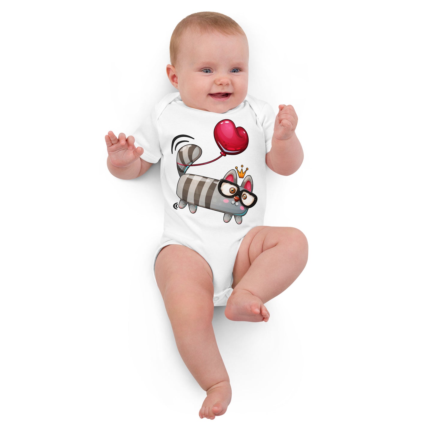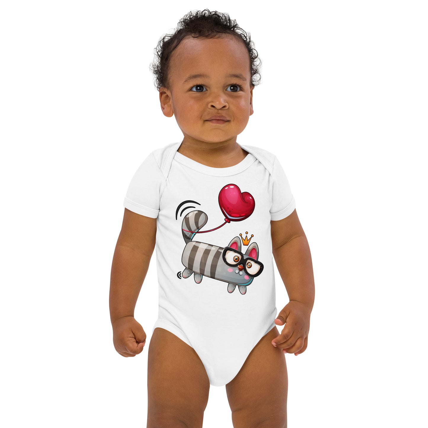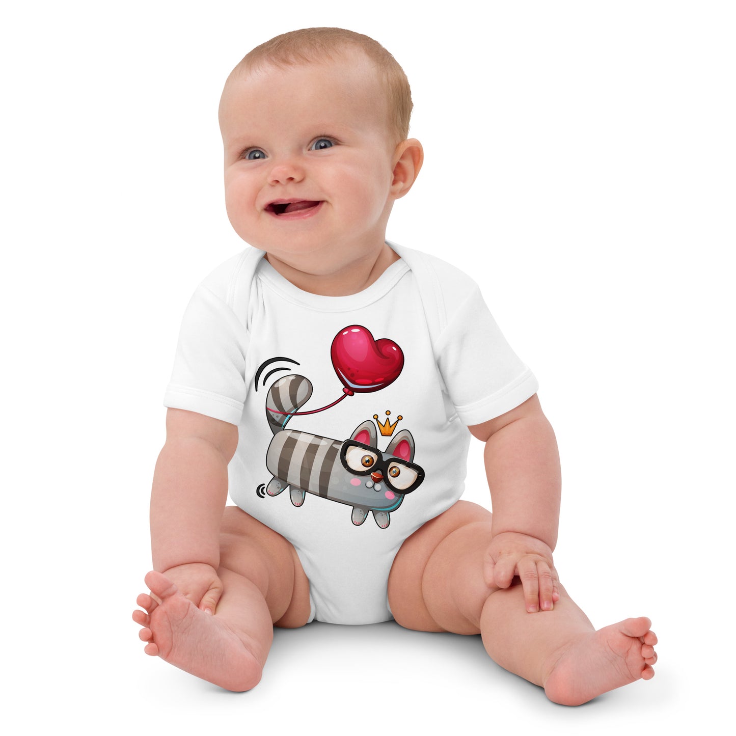 Funny Kitty Cat with Red Heart Bodysuit, No. 0426