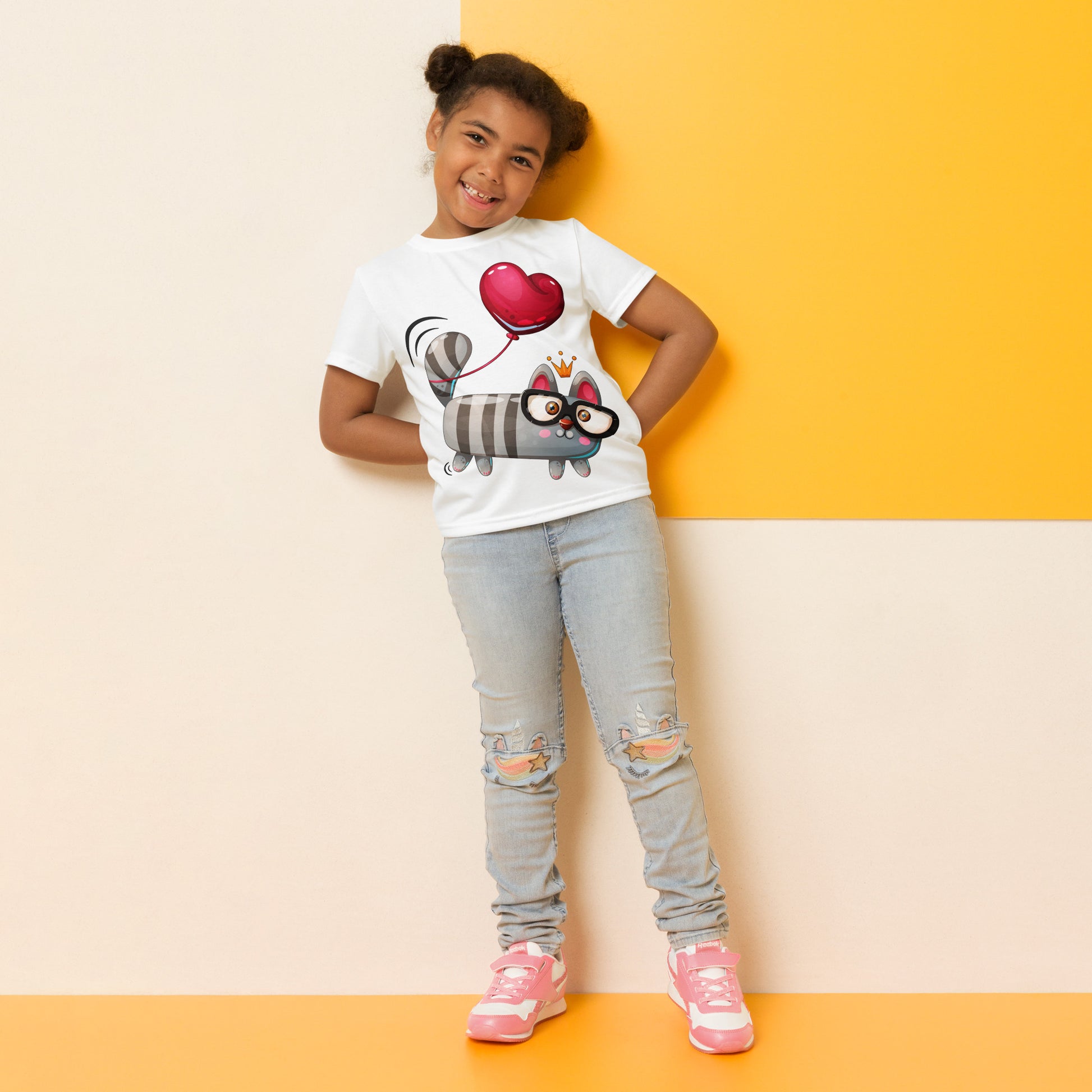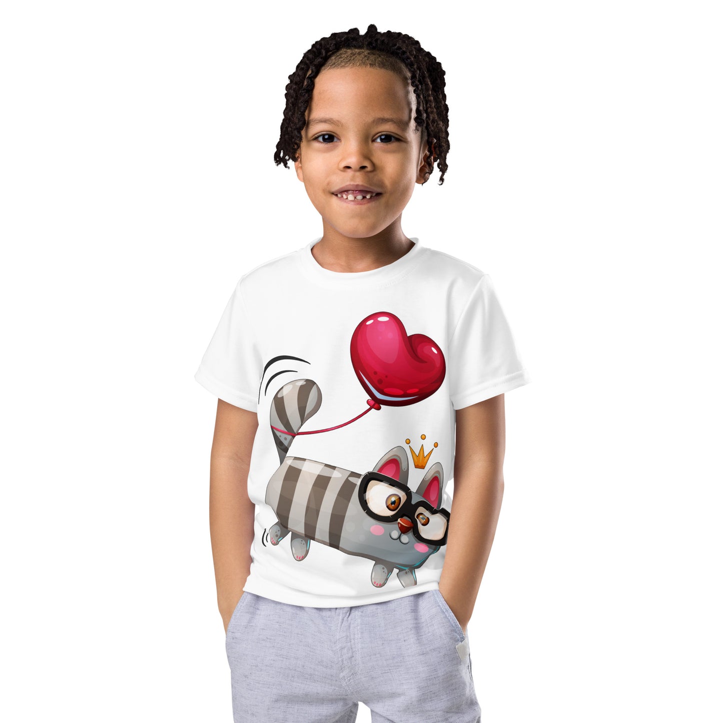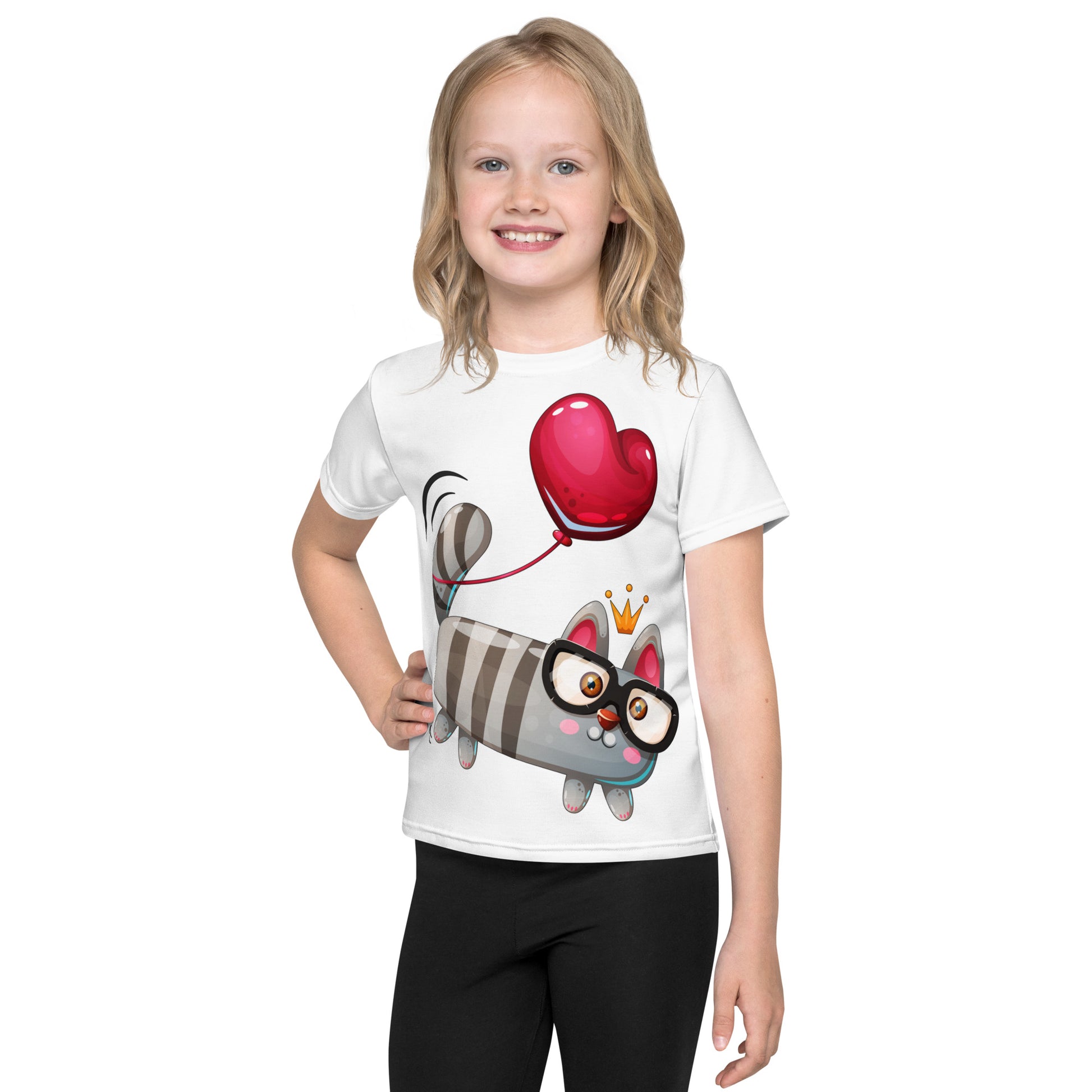 Funny Kitty Cat with Red Heart T-Shirt, No. 0426
